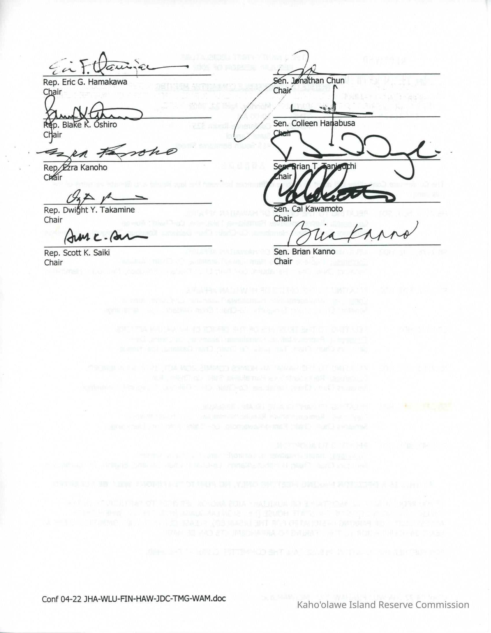 Hamakawa, Eric G., Oshiro, Blake K., Kanoho, Ezra R., Takamine, Dwight, Saiki, Scott K., Chun, Jonathan, Hanabusa, Colleen, Taniguchi, Brian, Kawamoto, Cal, Kanno, BrianDate(s) of Creation