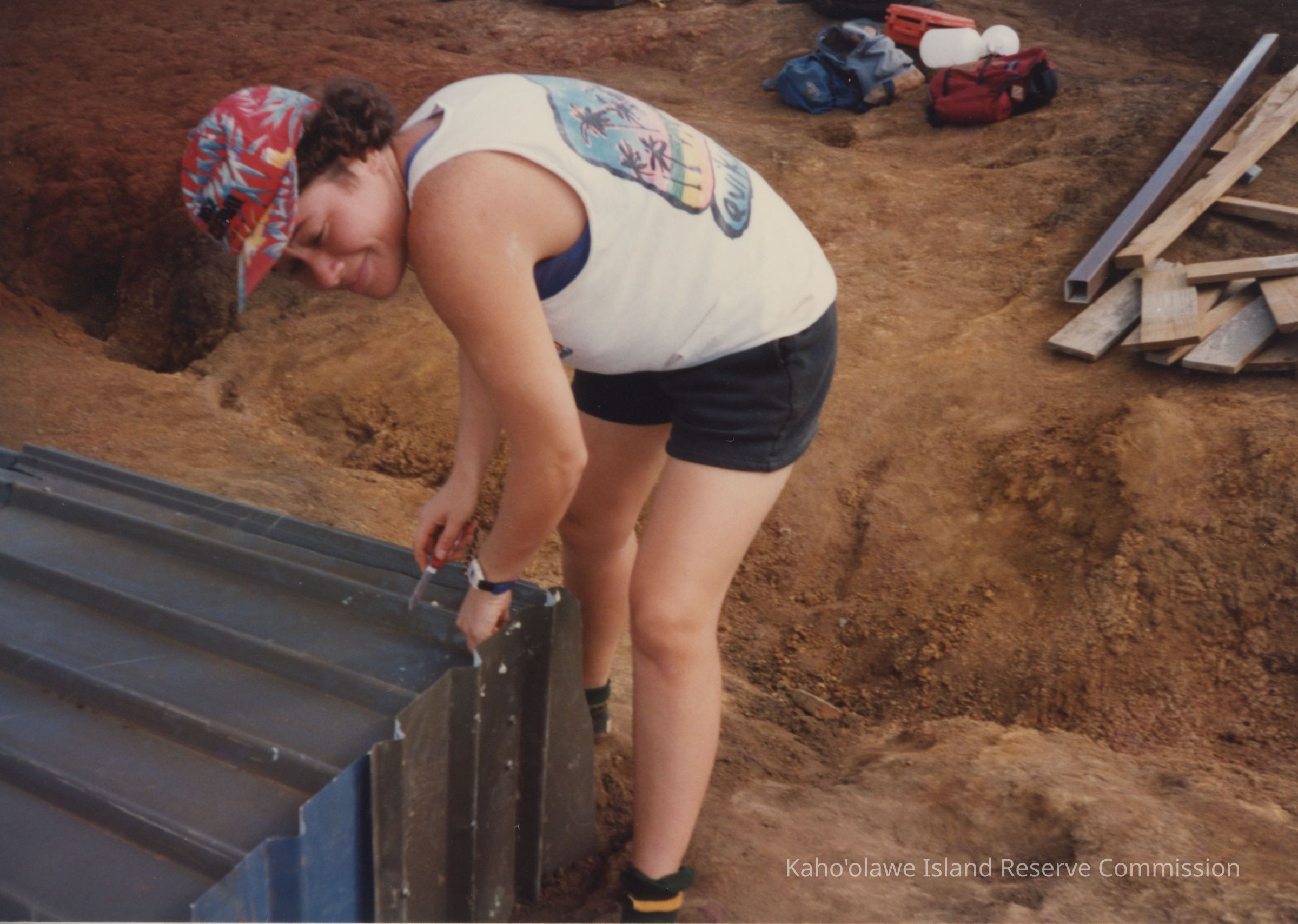 Person working on water catchment structure