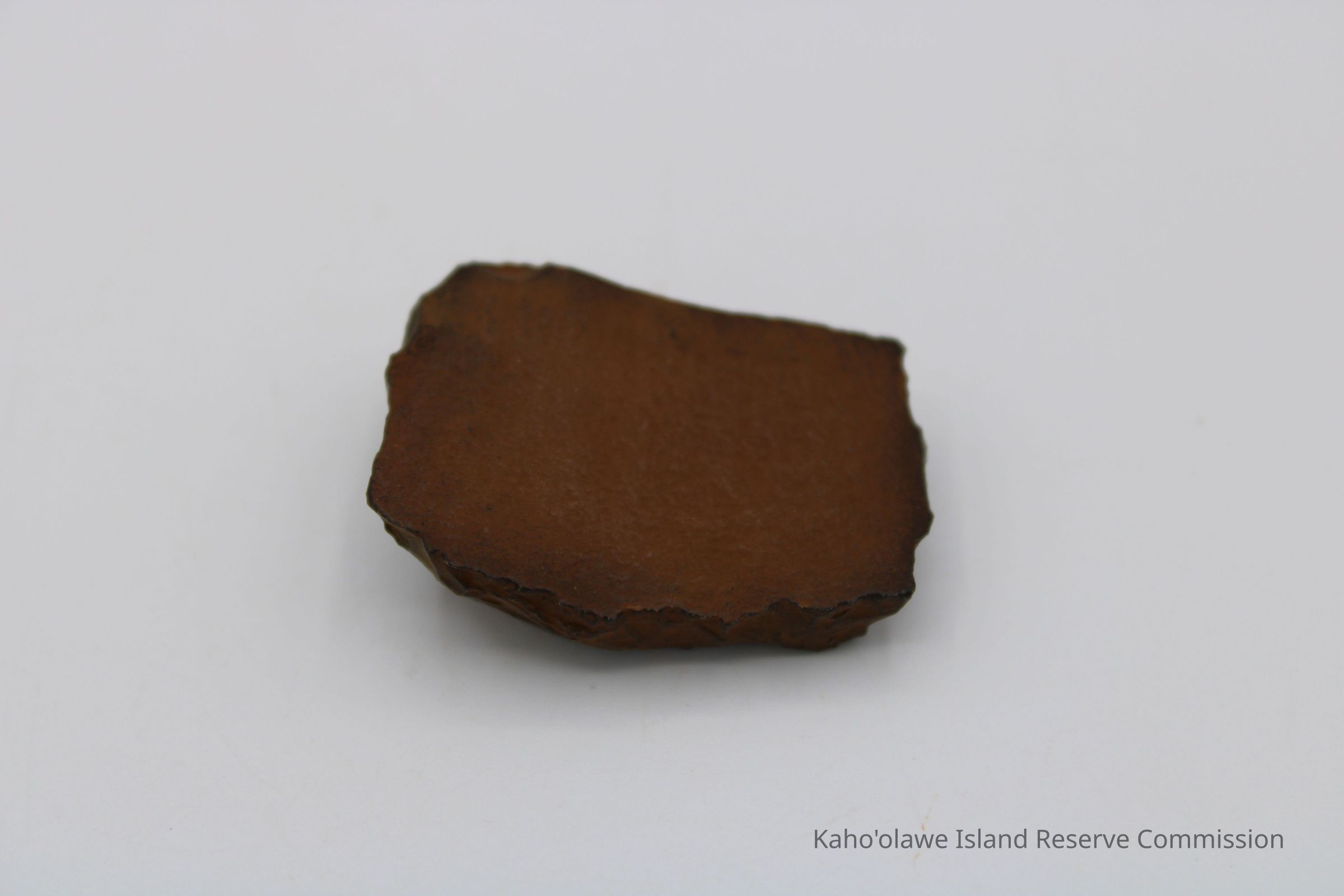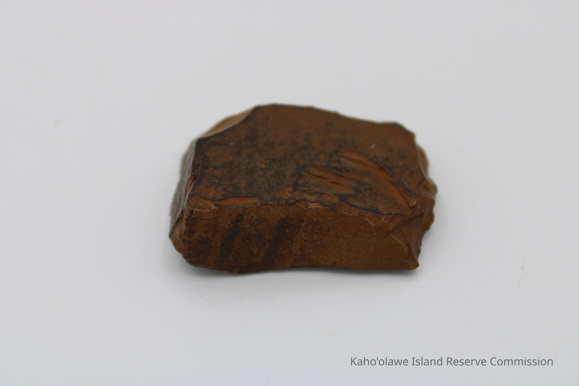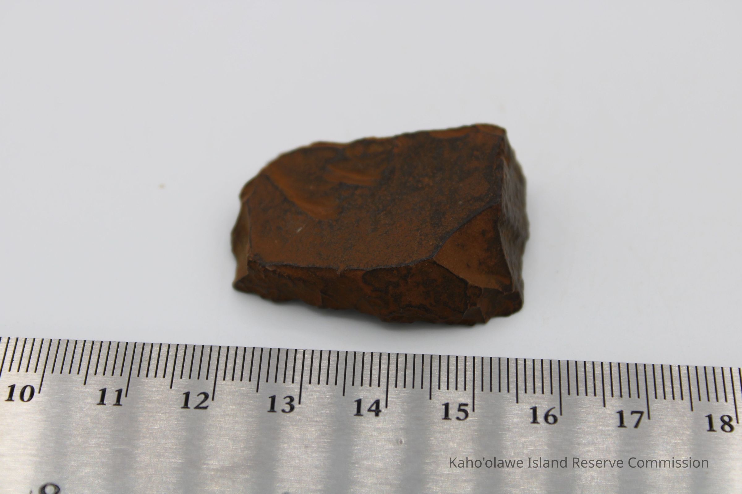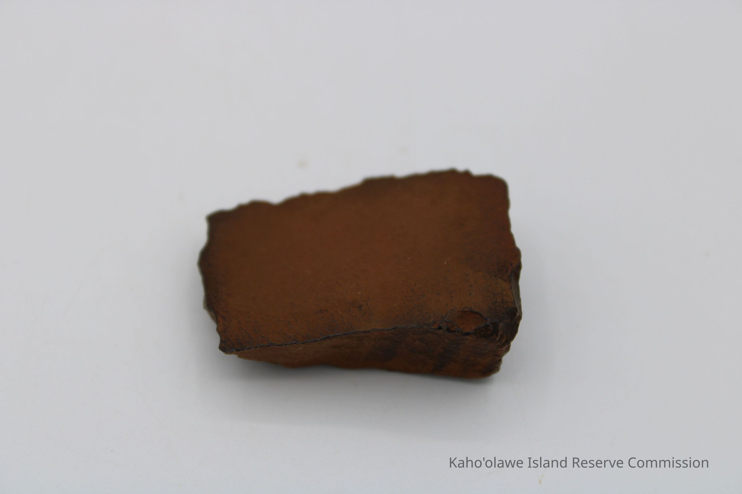 Oblong-shaped fragment of an adze preform. Black in color with brown cast.