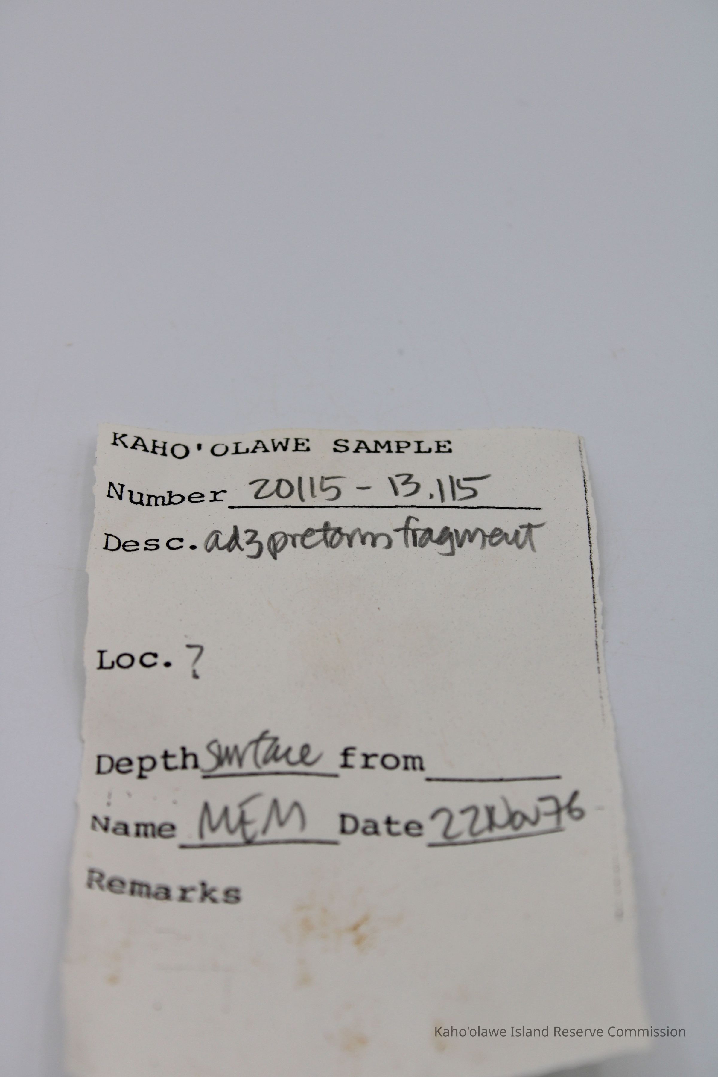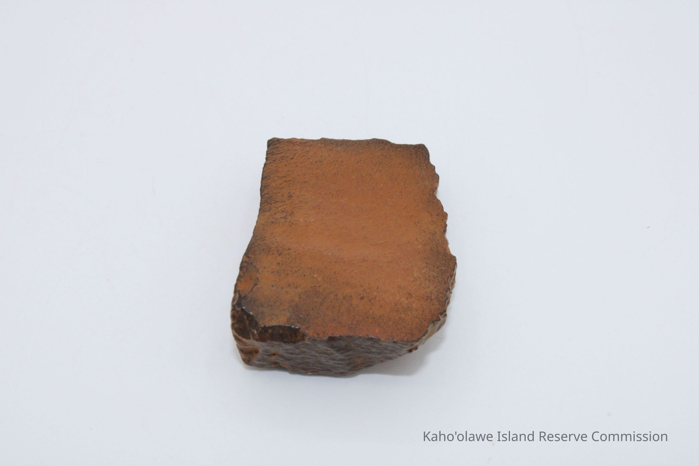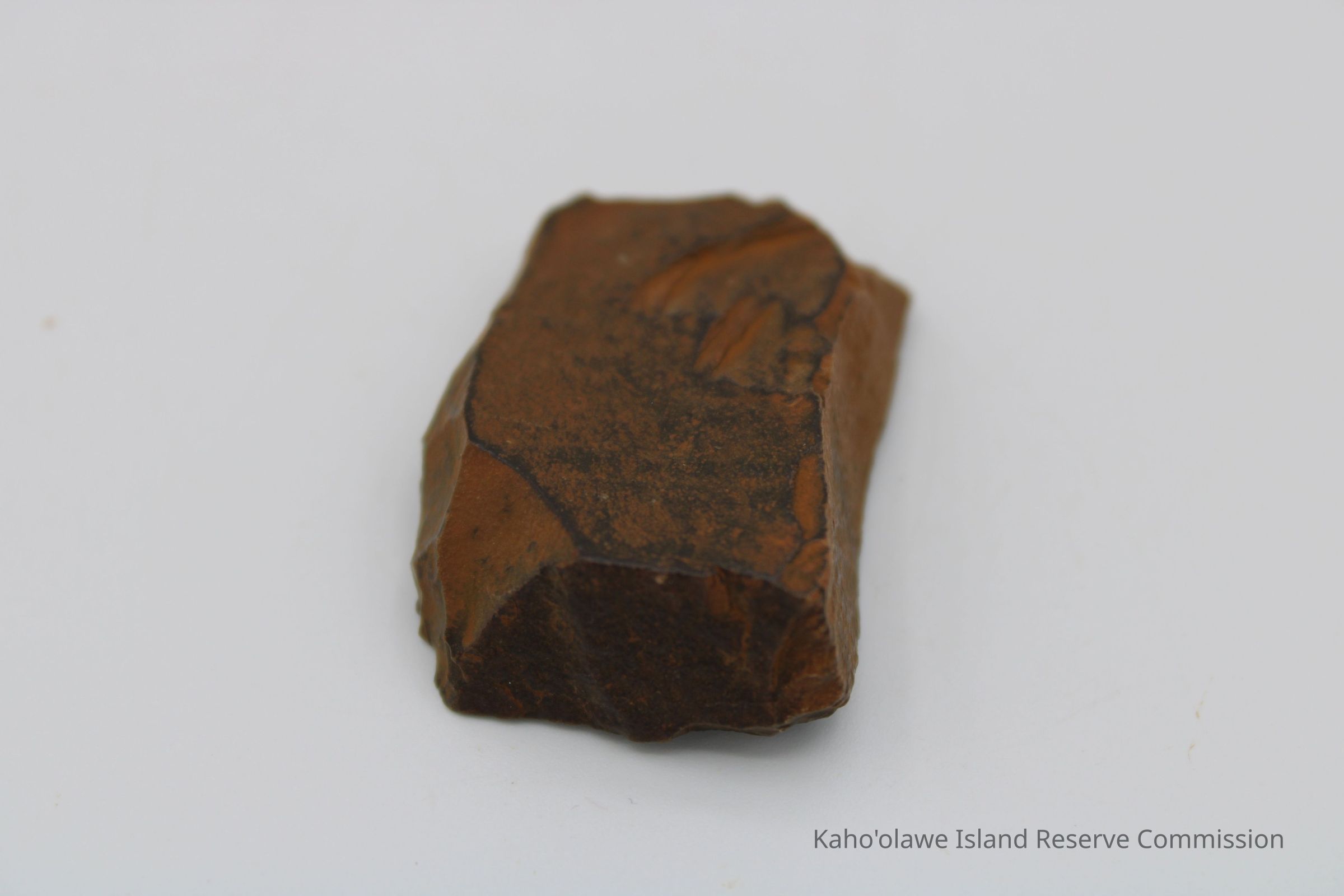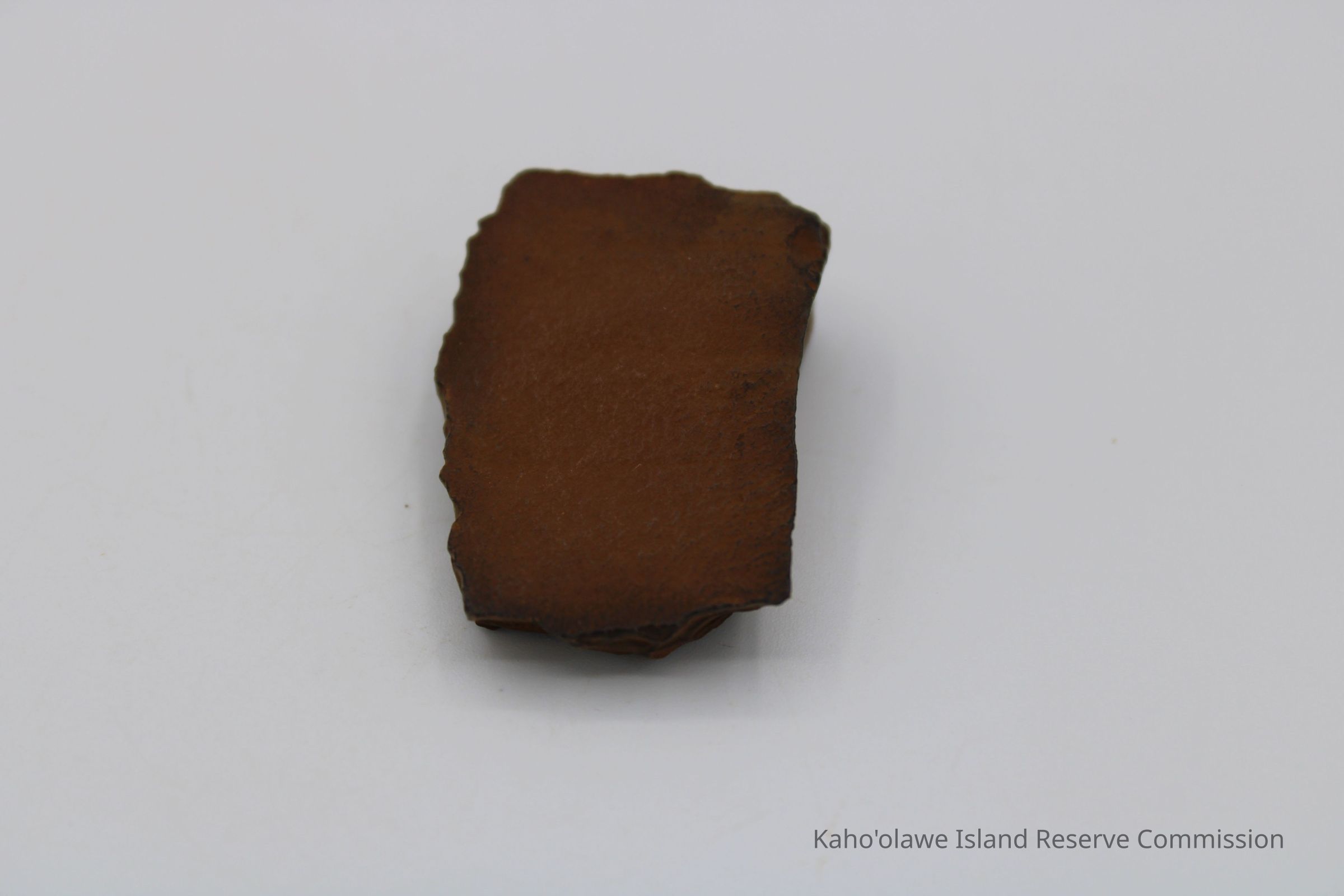 Oblong-shaped fragment of an adze preform. Black in color with brown cast.