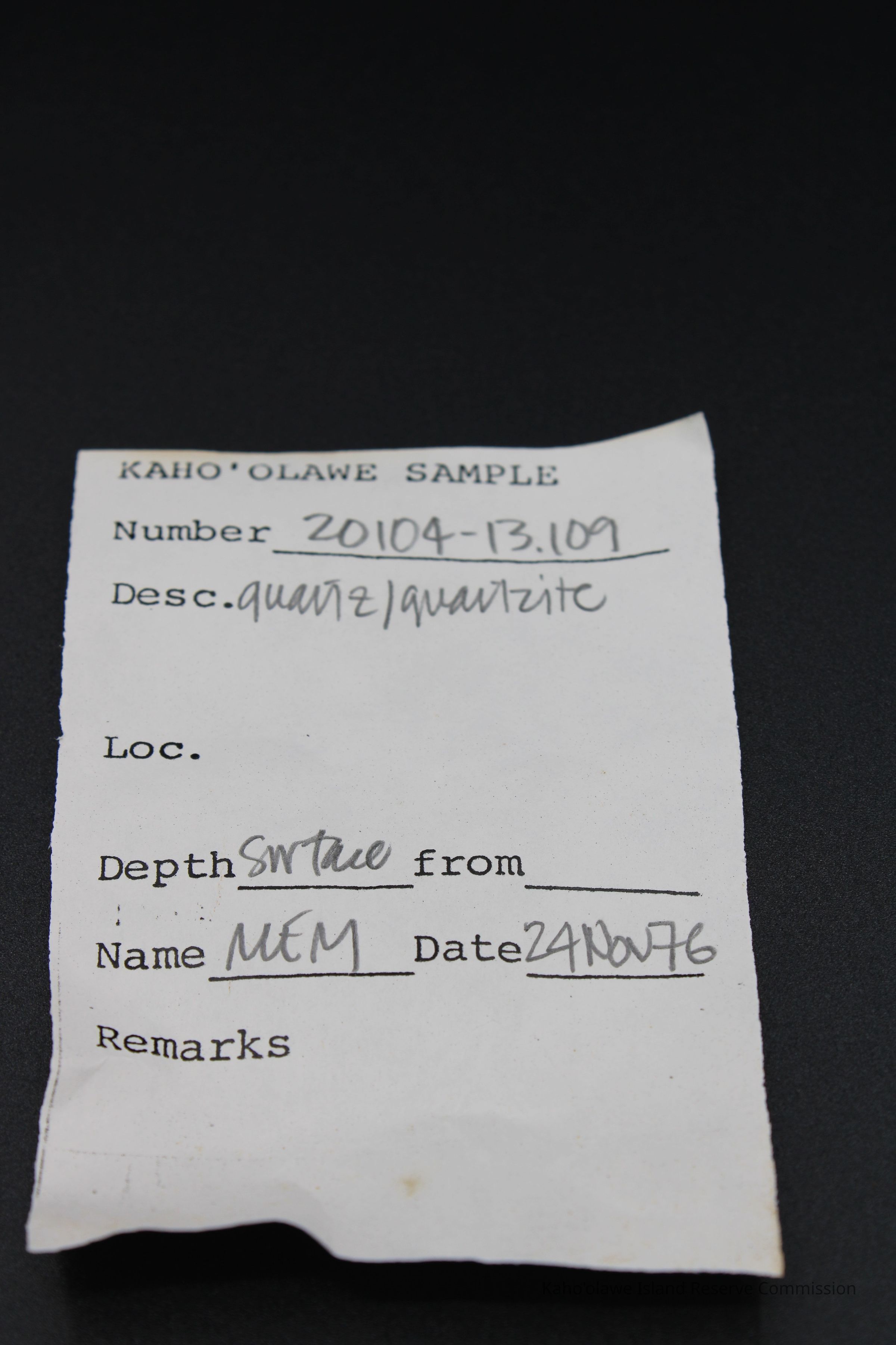 Quartz/quartziteEntry/Object ID