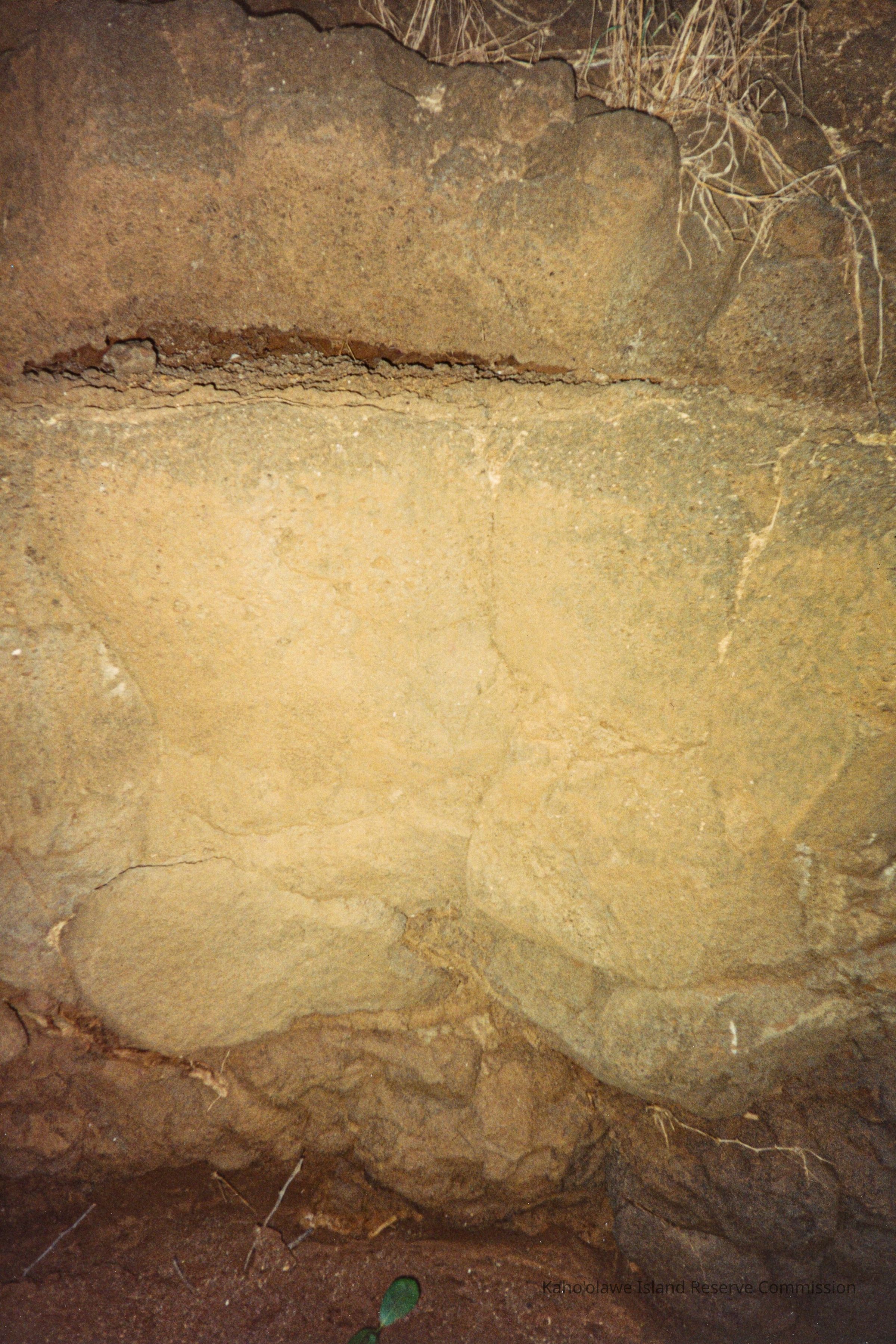 The image shows a textured rock face with rough surfaces and visible layers, exhibiting earthy tones and minimal vegetation.
