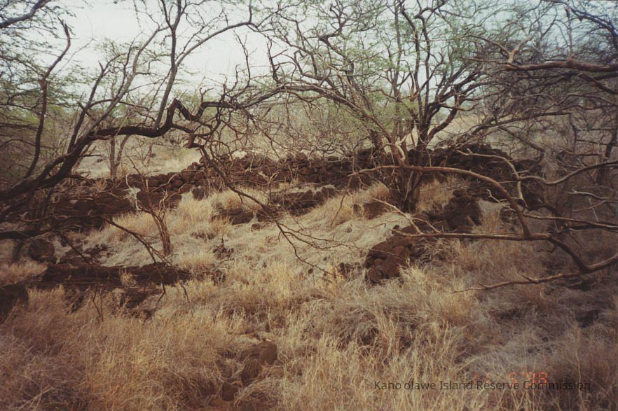 Photo of some of the rock walls at Site 128 at Hilu'ula.