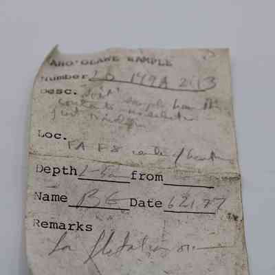 "Soil" sample of hearth contents; no selection was made; to be used flotation (per original artifact slip)Collection