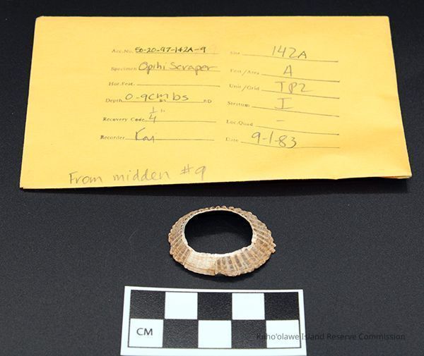 Artifacts, Marine, Cellana, deposit site, Habitation site, Kealaikahiki Traditional Cultural Property, Kealaikahiki Work Area, Lae 'O Halona, Lae 'O Kealaikahiki, marine resources, 'opihi, scraper, shell, limpet