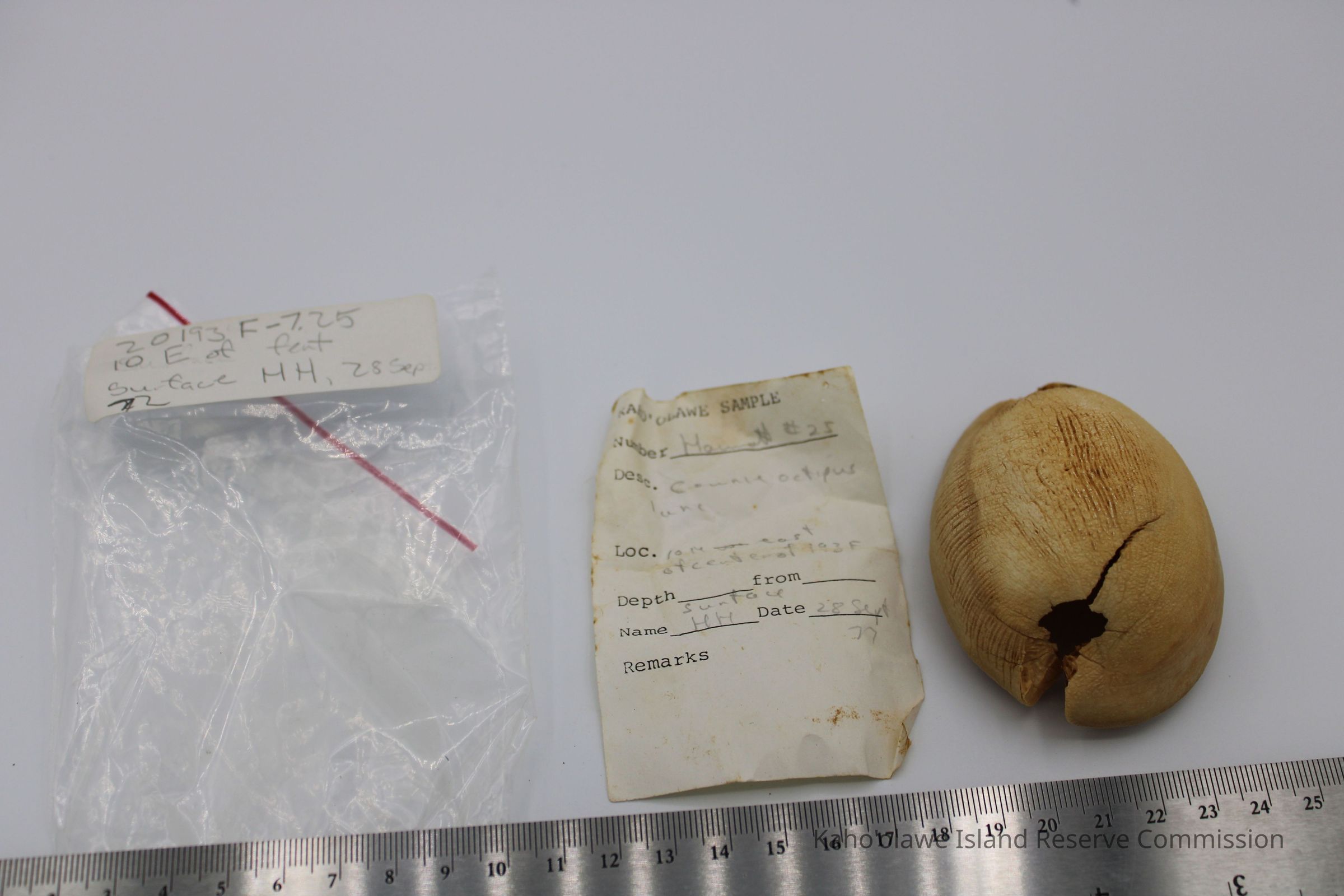 The image shows an octopus lure accompanied by a handwritten label, measured with a ruler.