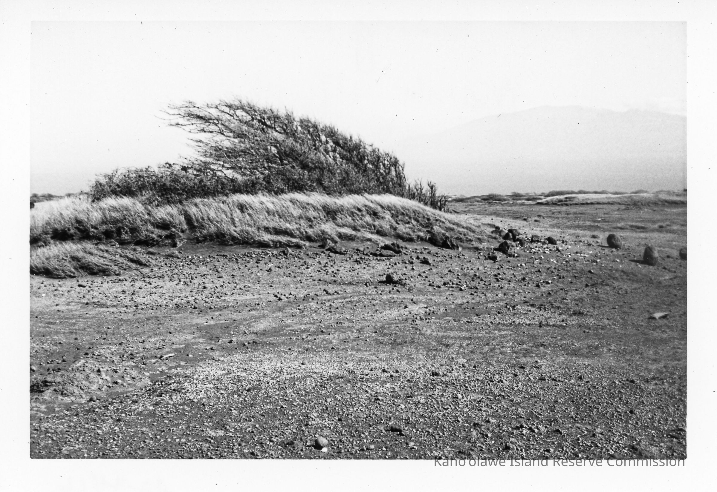 Black & white photo of Site 102 with hummock looking northwest, print #3.
