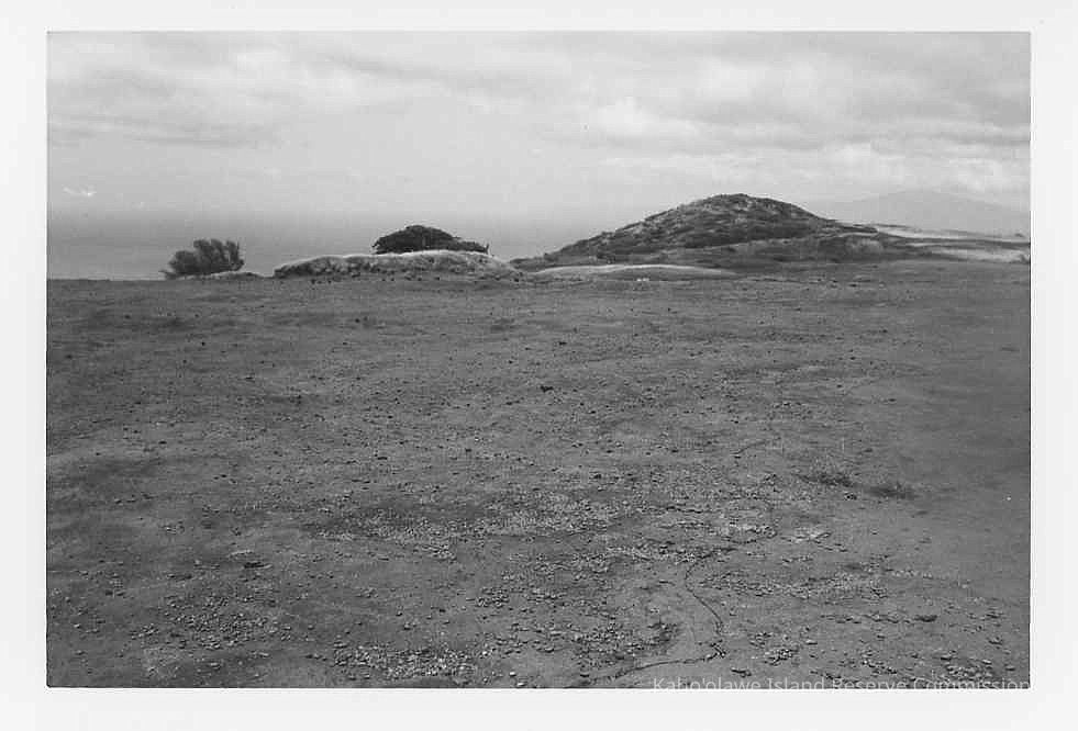 In the black and white photograph, a vast, barren landscape stretches out, while distant hills rise gently beneath a cloud-filled sky.