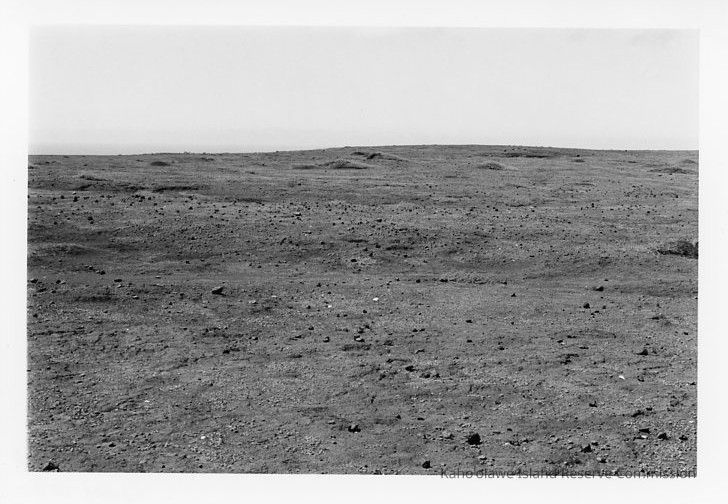 The image depicts a vast, barren, and flat expanse of land, with a sparse scattering of small rocks and pebbles.