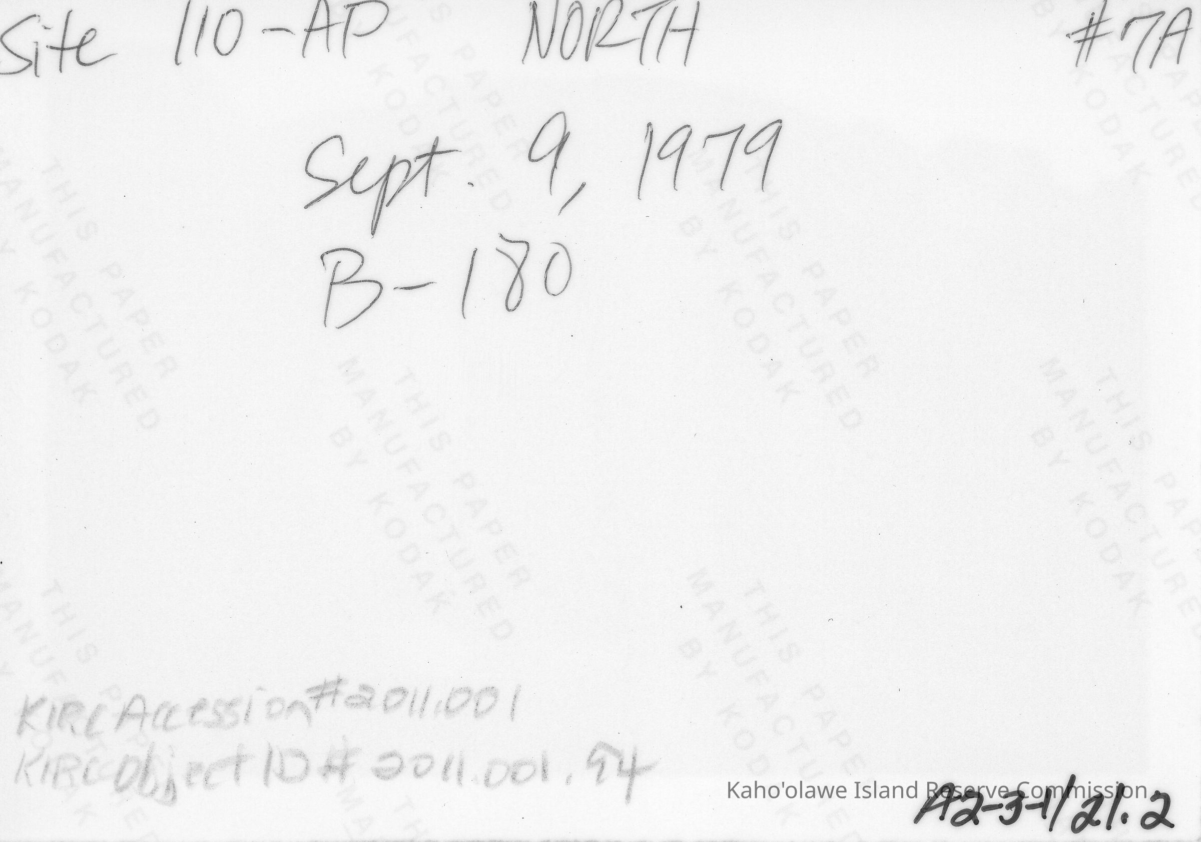 Link to: \\KIRC-LIB-01\Library Database\PhotoRec\Photo logs_acc\Photo rec_Sept 1979-Jan 1980_acc Kaho 1 for Site 110; TO 32