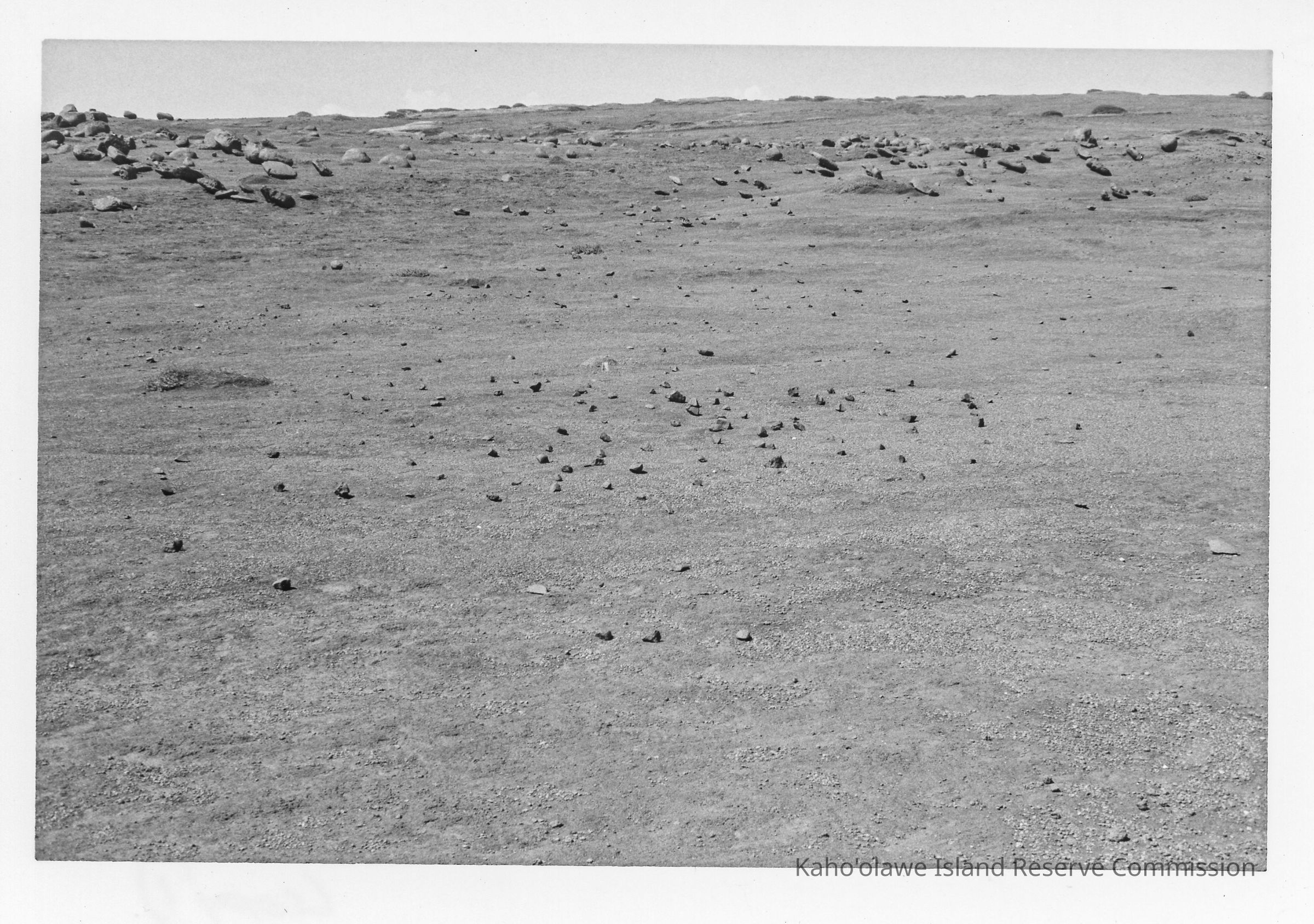 Black & white photos of a distant view of Site 110 Feature AZ facing northwest. There are two copies. Photo taken near head of Kāneloa Gulch, Kūnaka/Naalapa 'Ili.Photograph Details