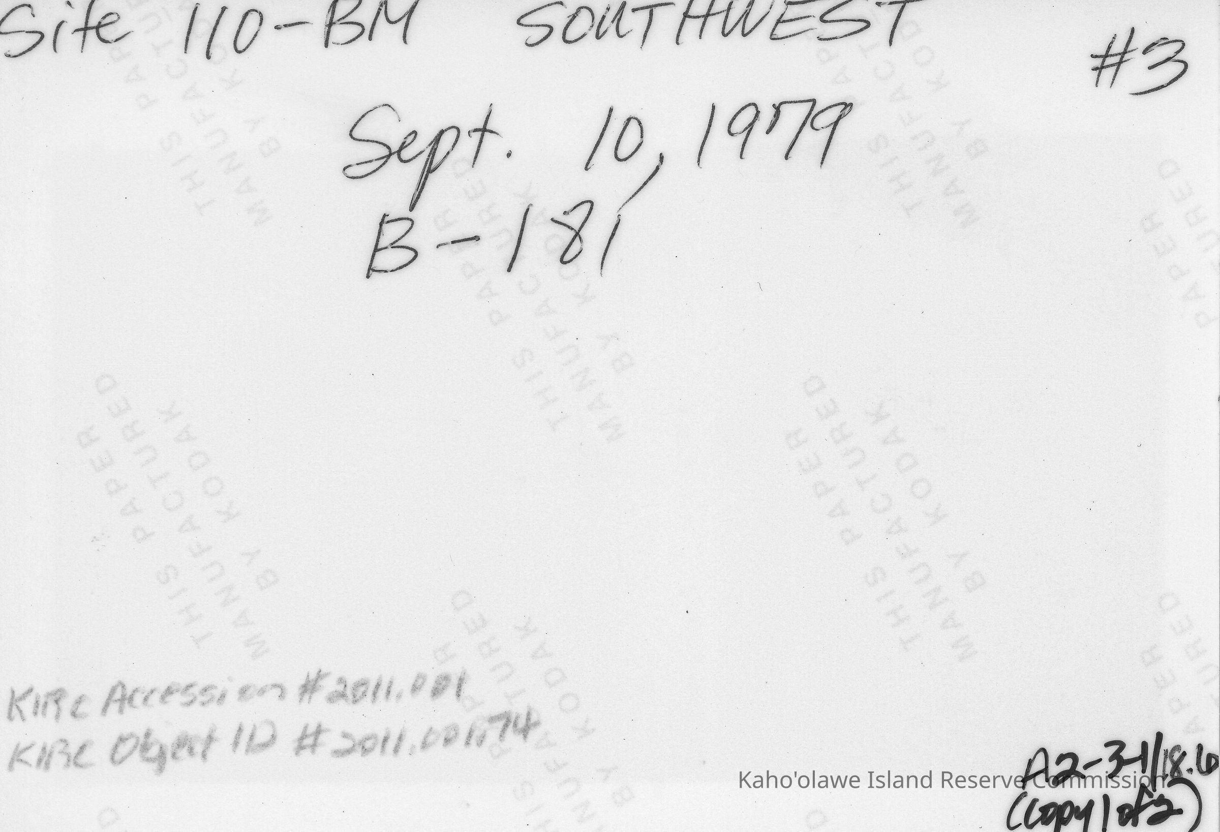 Site 110BM #3Entry/Object ID