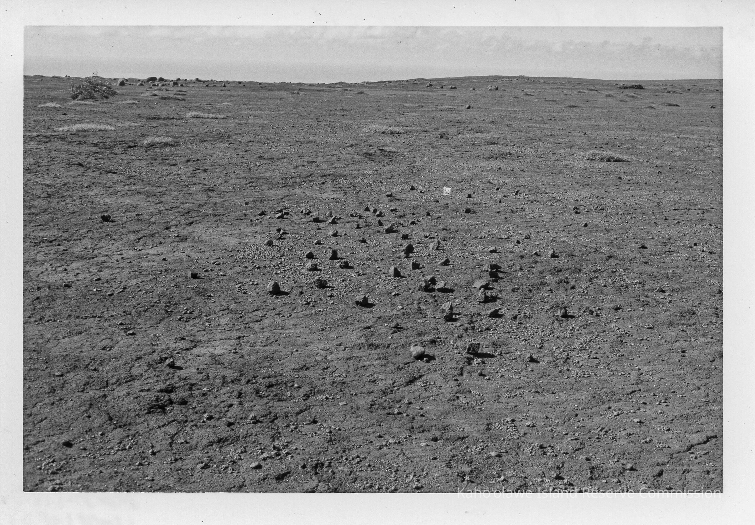 Black & white photos of Site 110BQ facing south. There are two copies. The photo was taken near head of Kāneloa Gulch, Kunaka/Na'alapa Ili, Kaho'olawe.Photograph Details