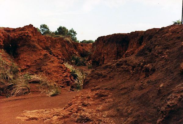 Color photo of soil erosion gulch.