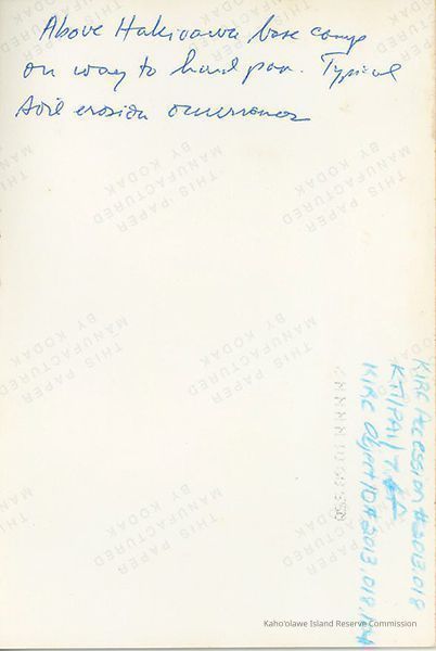 Color photo of soil erosion formation above Hakioawa base camp on the way to hard pan. It is typical of soil erosion occurences.