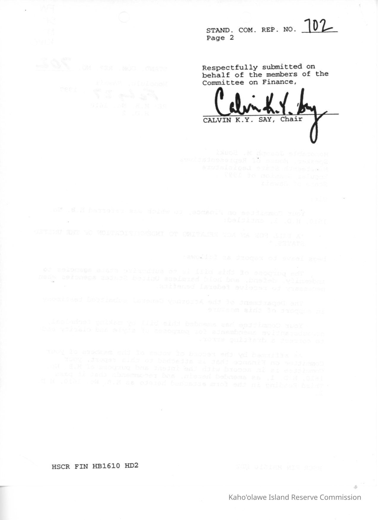 Standing Committee Report No. 702Description
