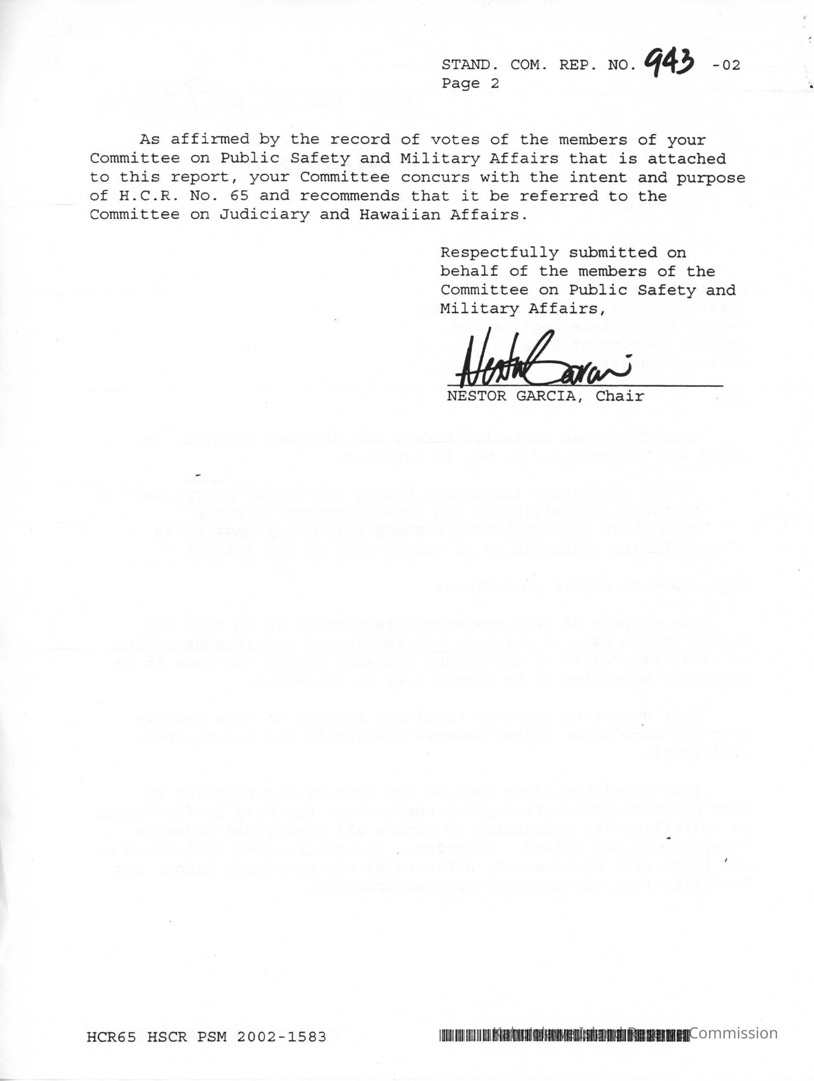 Standing Committee Report No. 943-02 re: H.C.R. No. 65Description