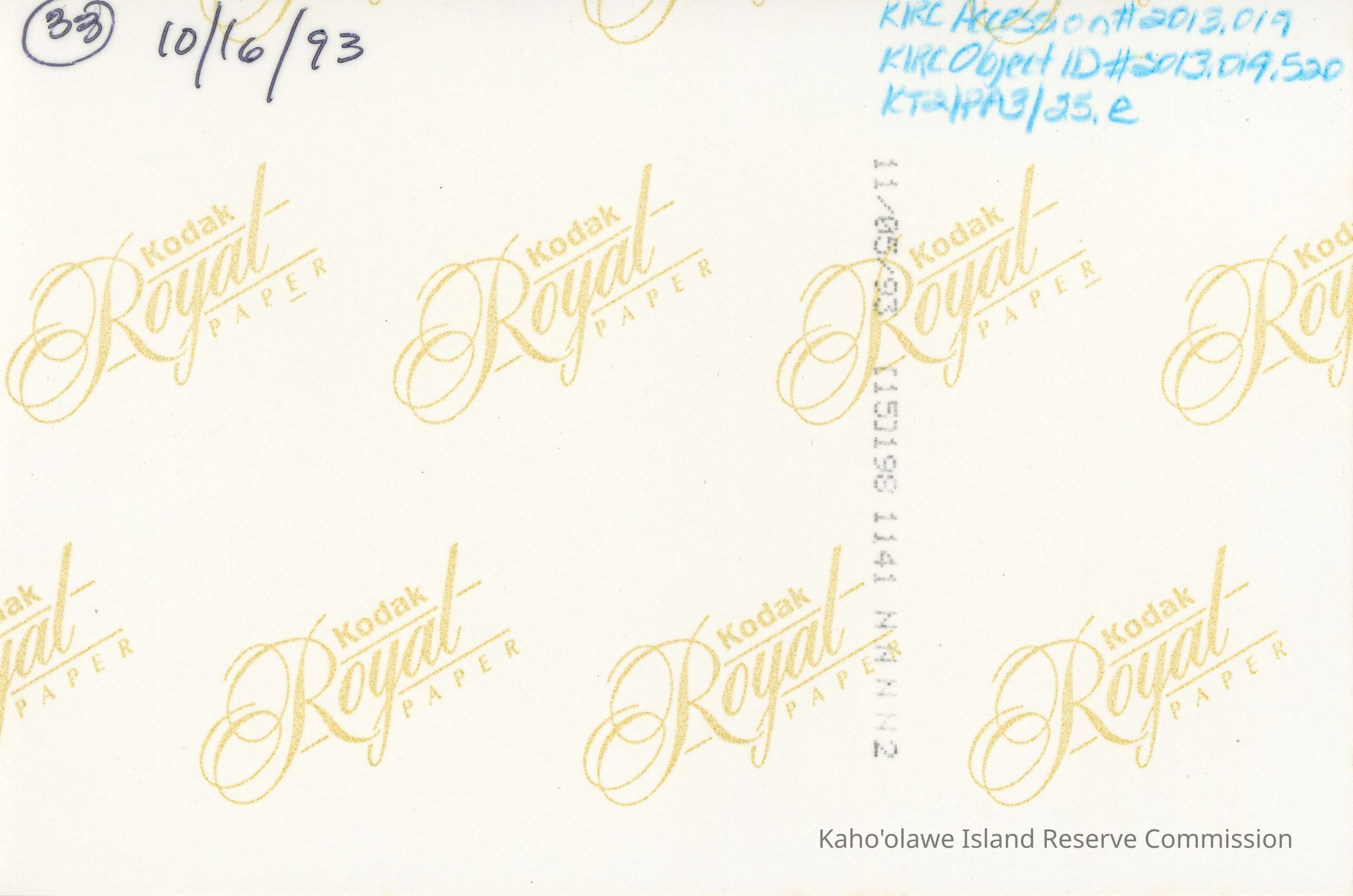 Color poor quality photograph of flowing stream (possibly Hakioawa Stream) between rocks. The number "33" and 10/16/93 handwritten in black ink on the back of the photo.