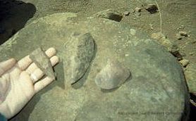 Three lithic artifacts on a pohaku (rock)Entry/Object ID
