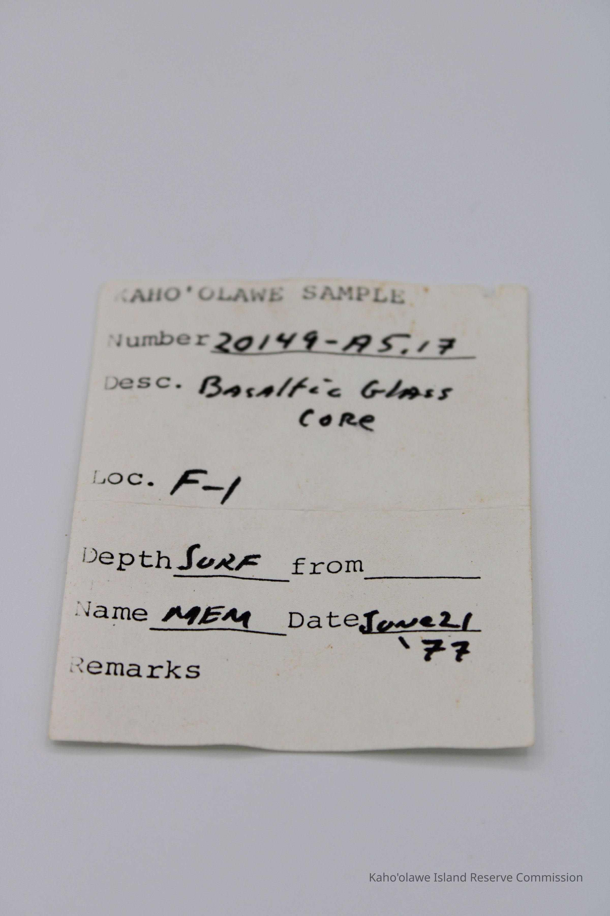 Tiny basaltic glass coreEntry/Object ID