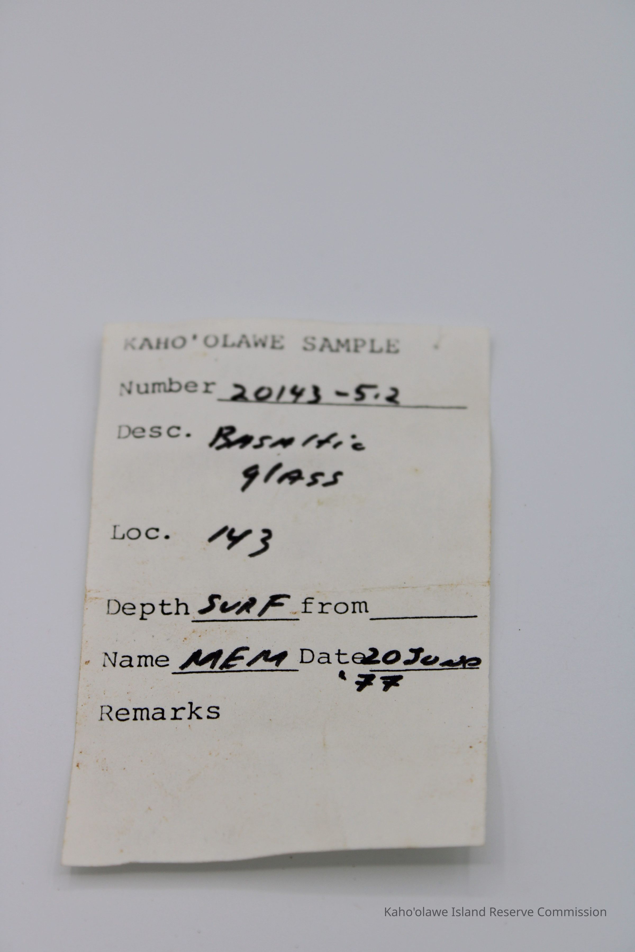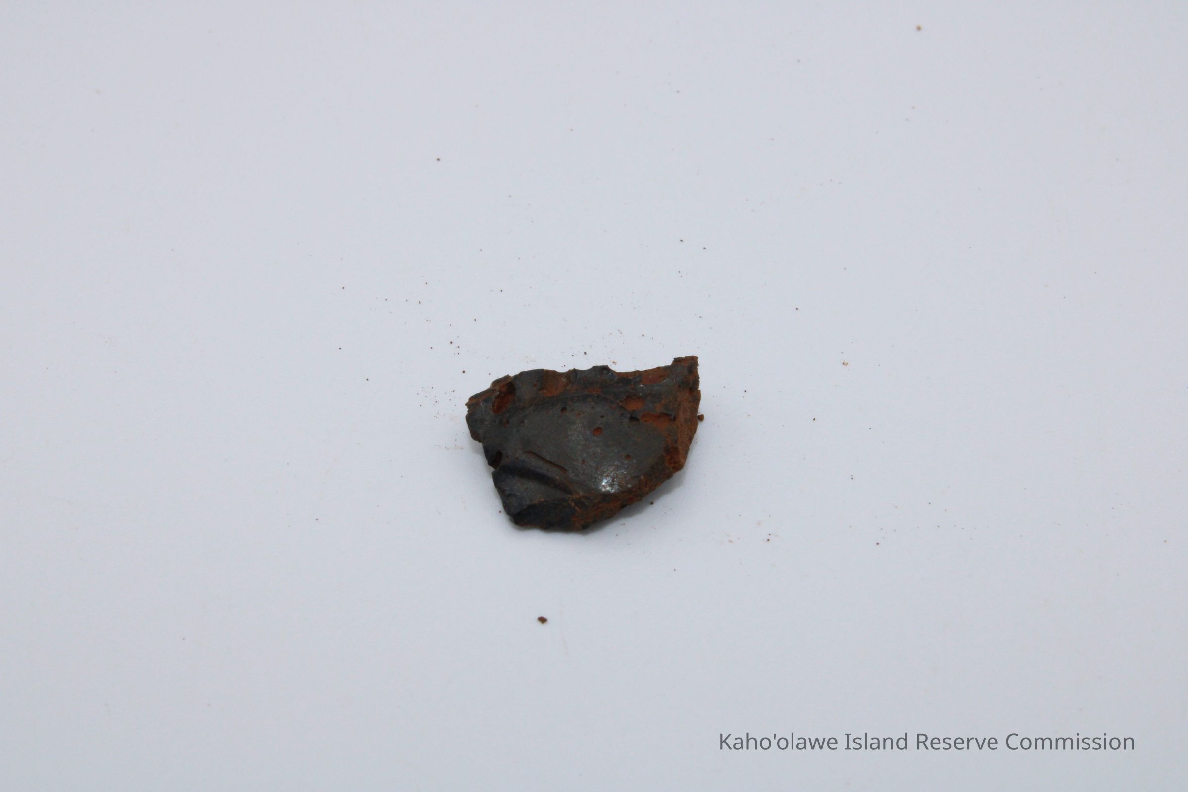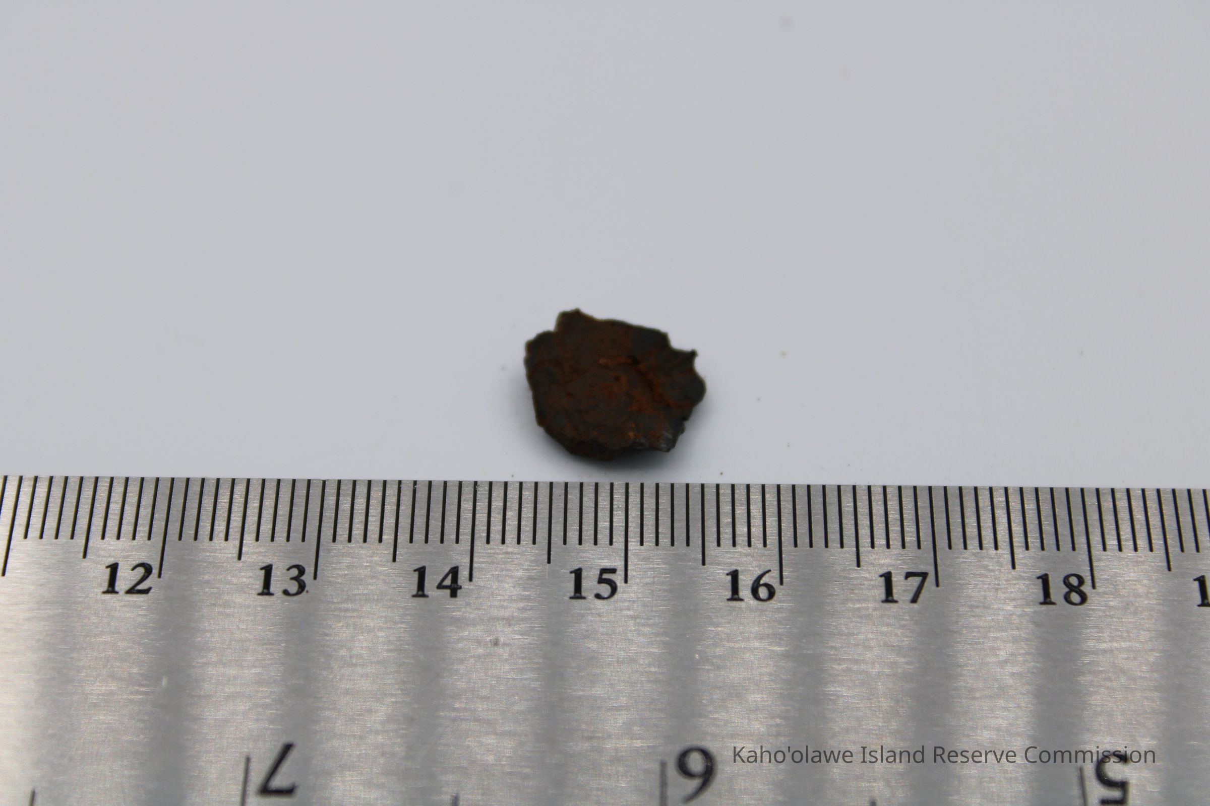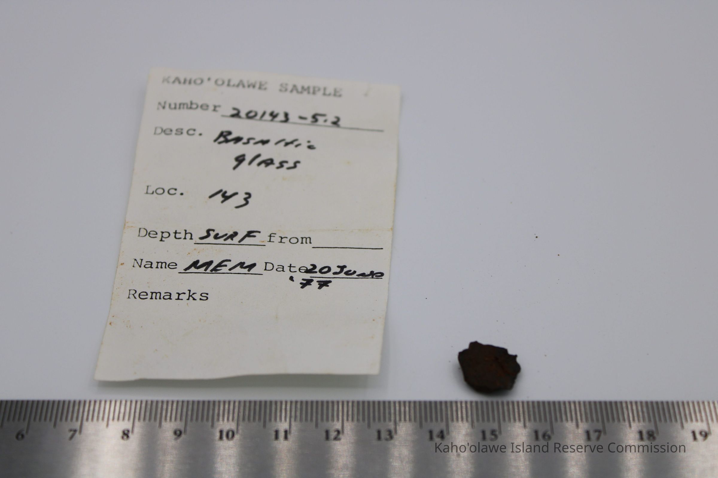 Tiny piece of basaltic glass with ruler and artifact slipEntry/Object ID