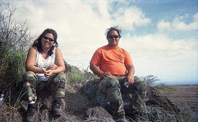 Two people sitting on pohaku (rocks)Entry/Object ID