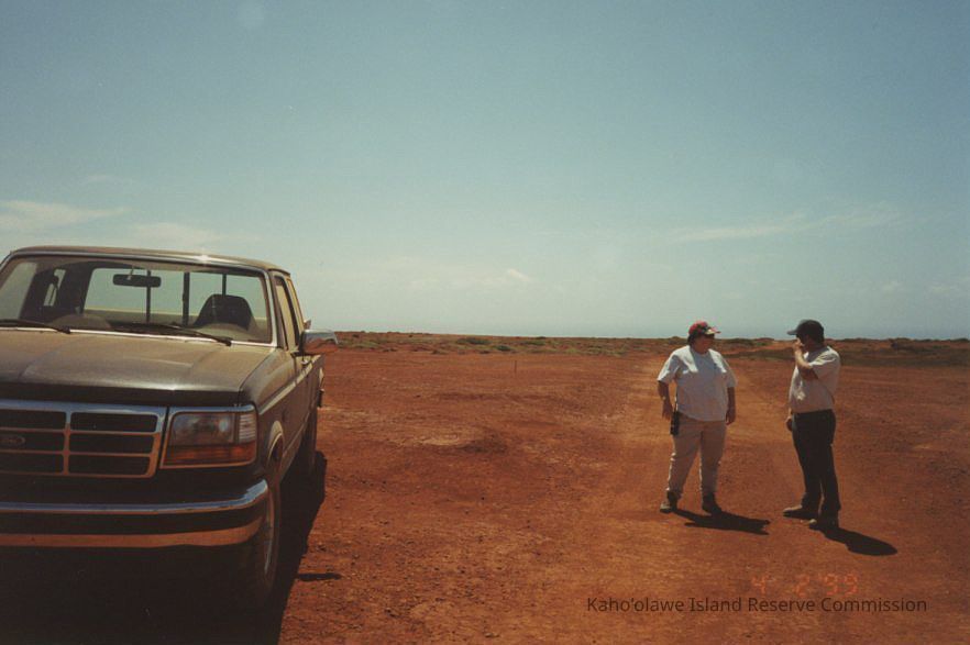 Unidentified people speak near a truck on hardpan: Origsize: 4" x 6"; Resolution: 150 dpi