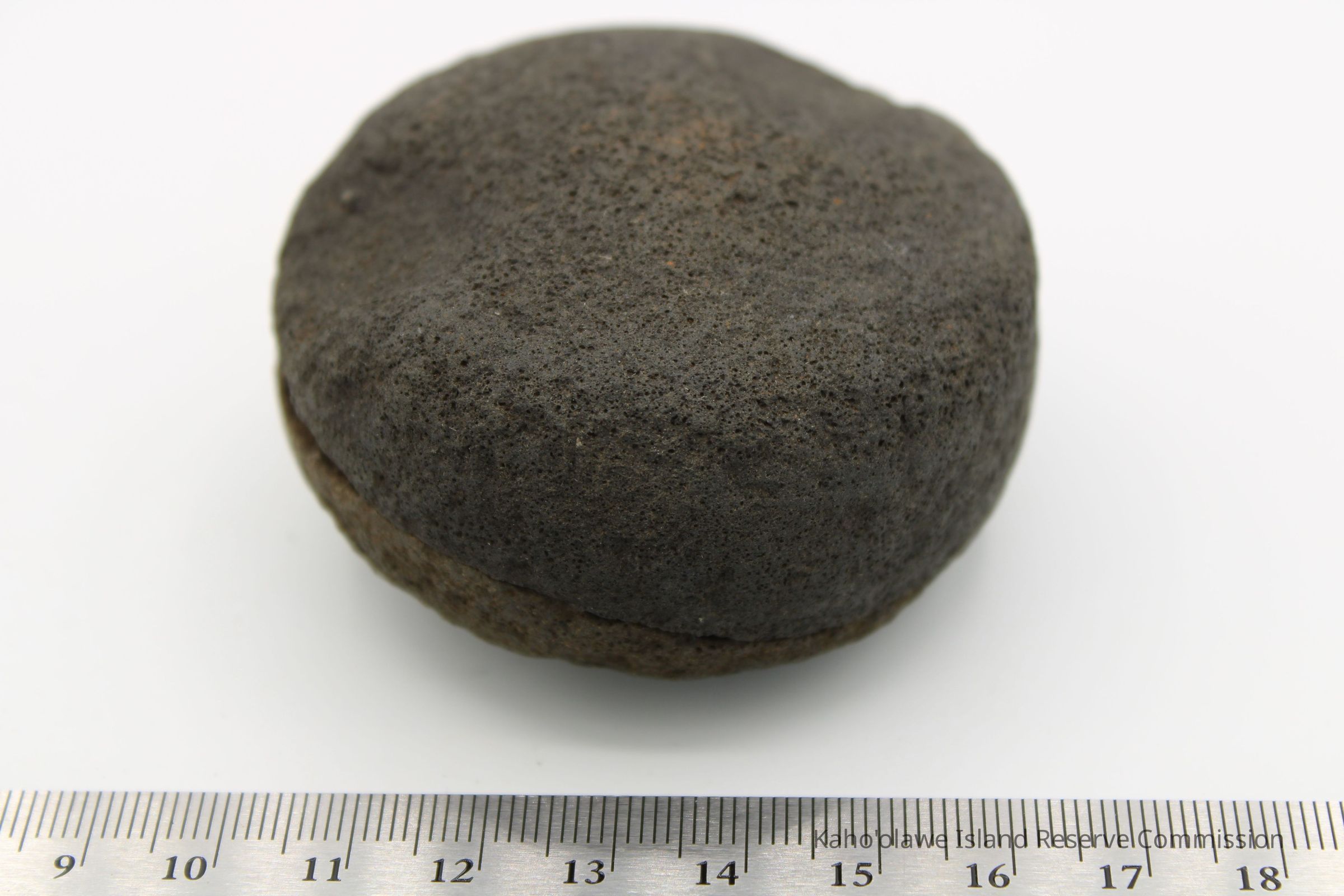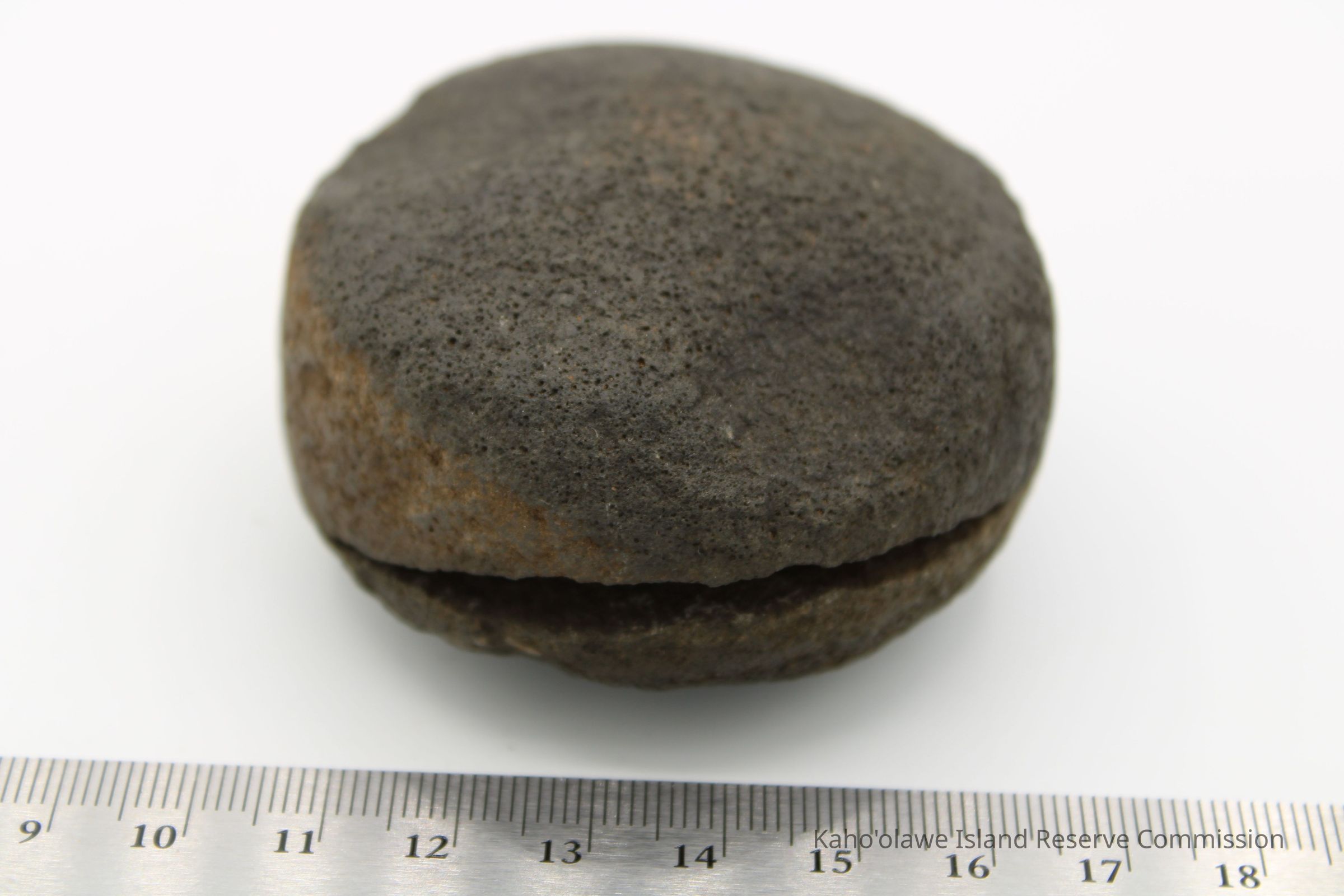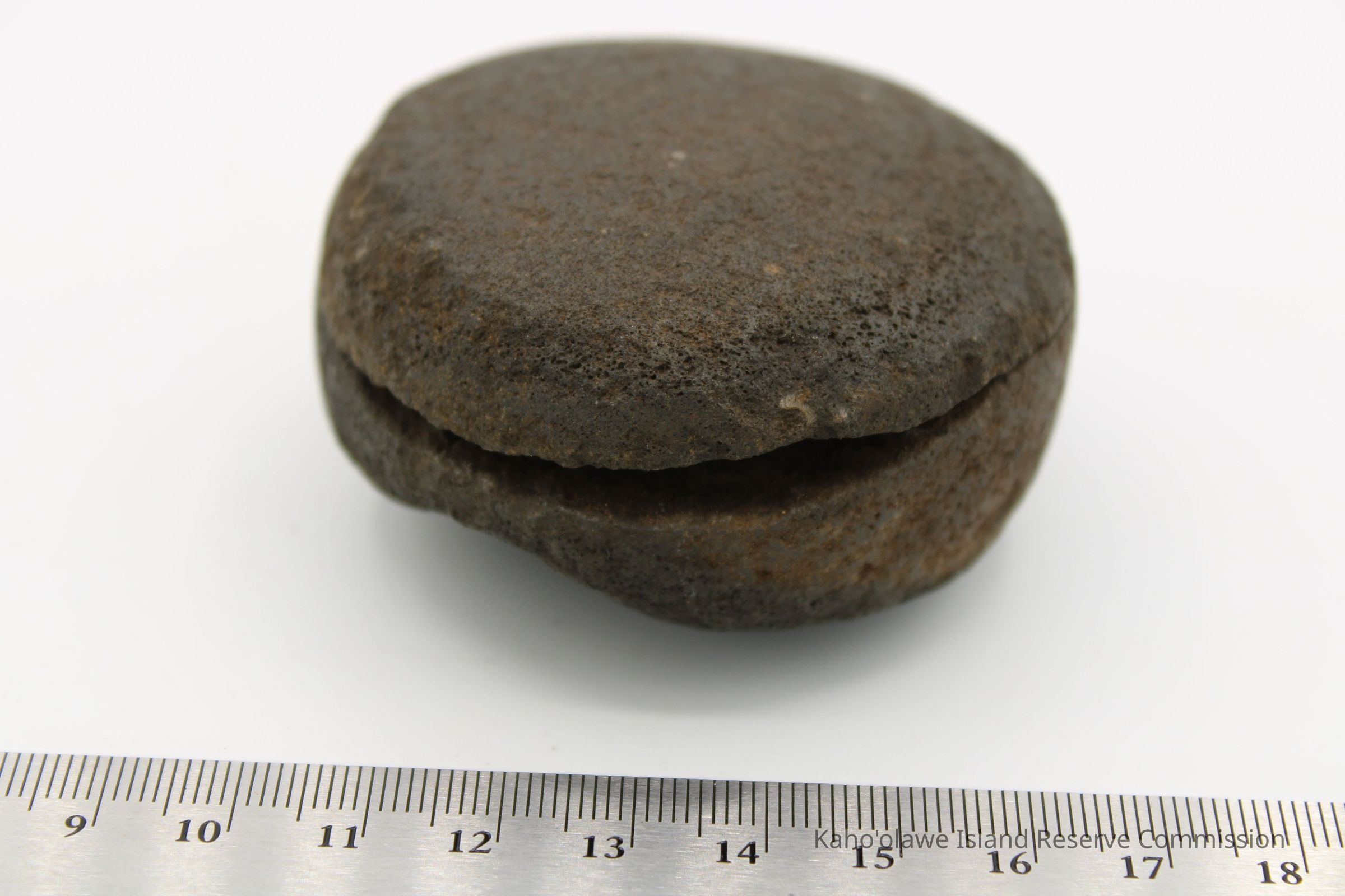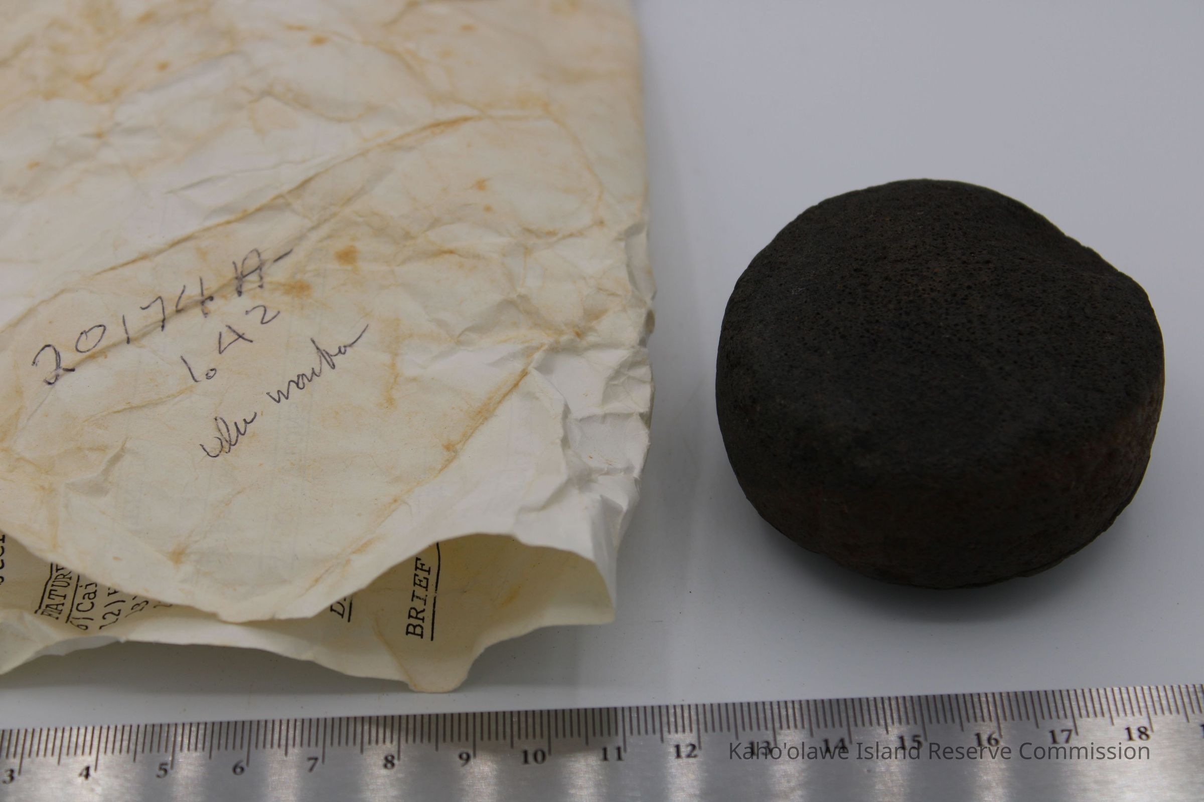 The image shows an 'ulu maika stone next to a crumpled paper with handwritten notes, including measurements.