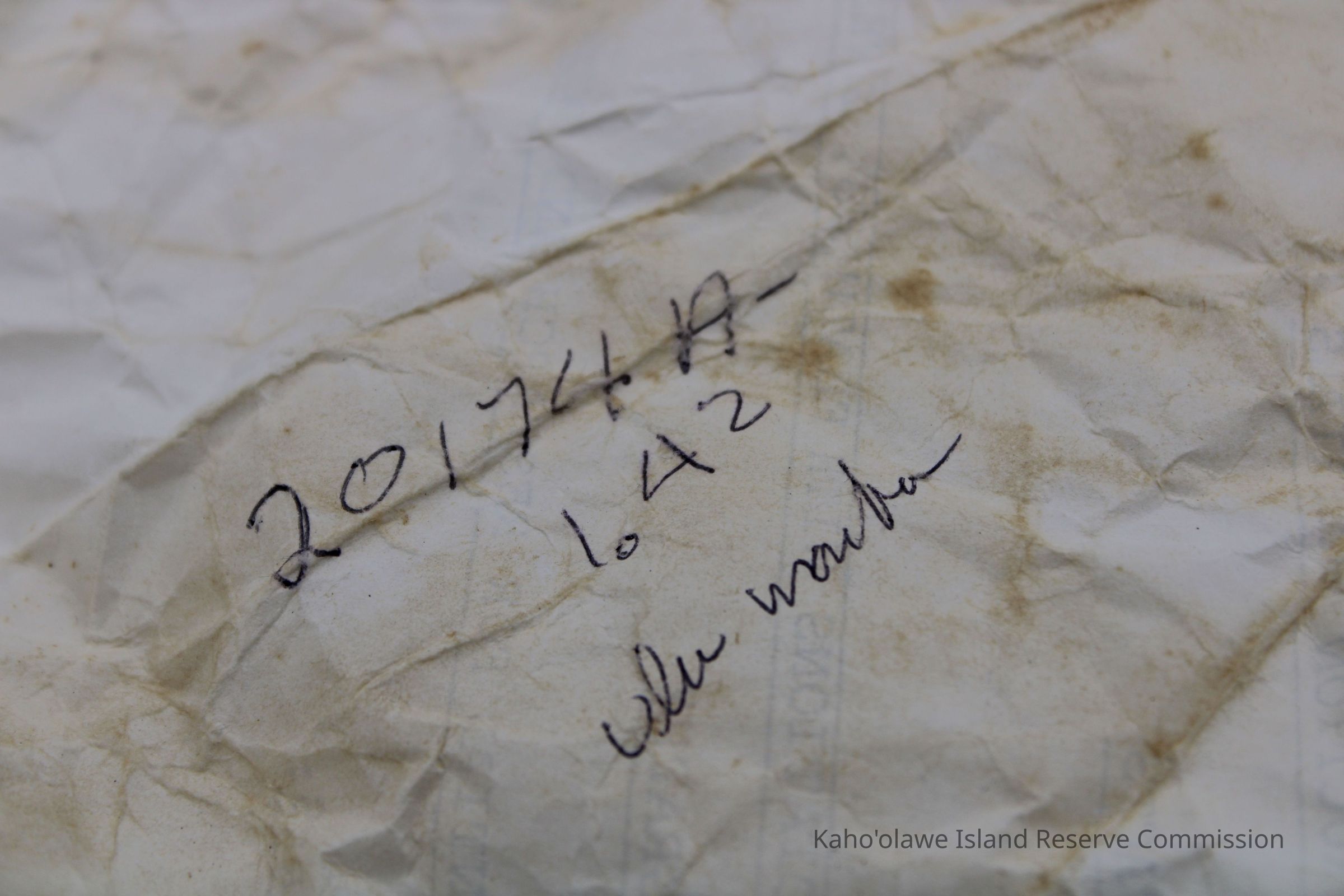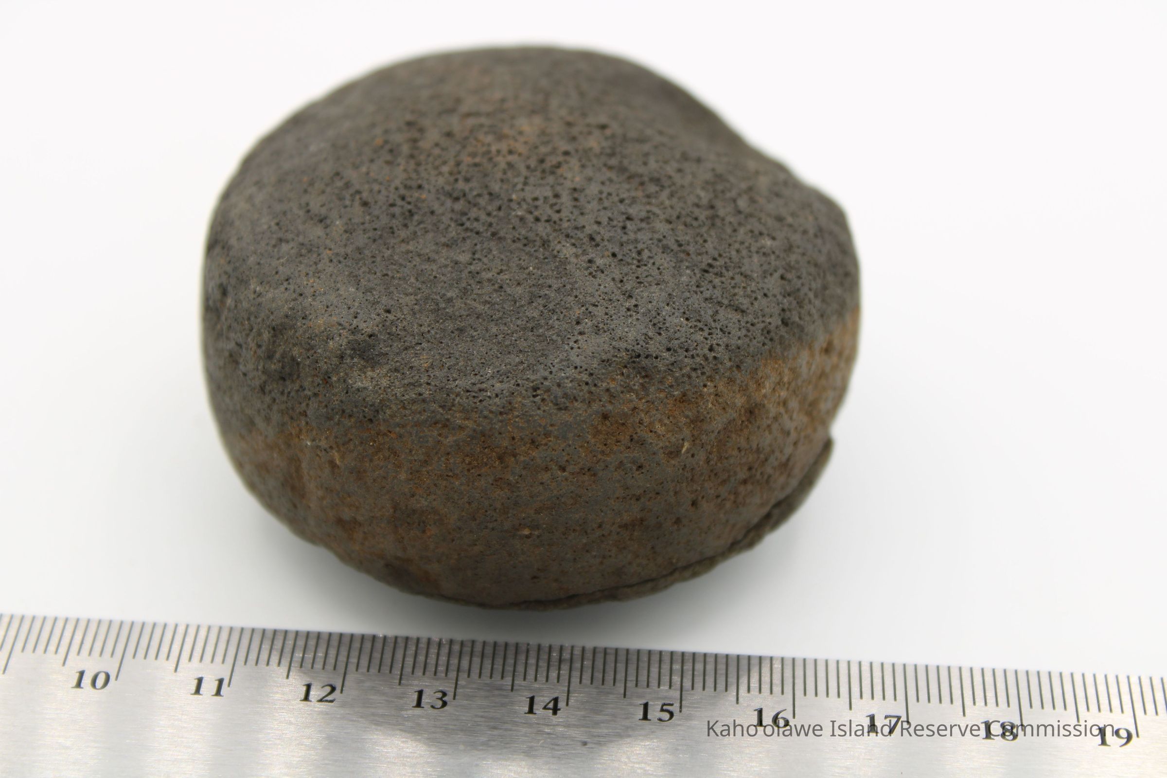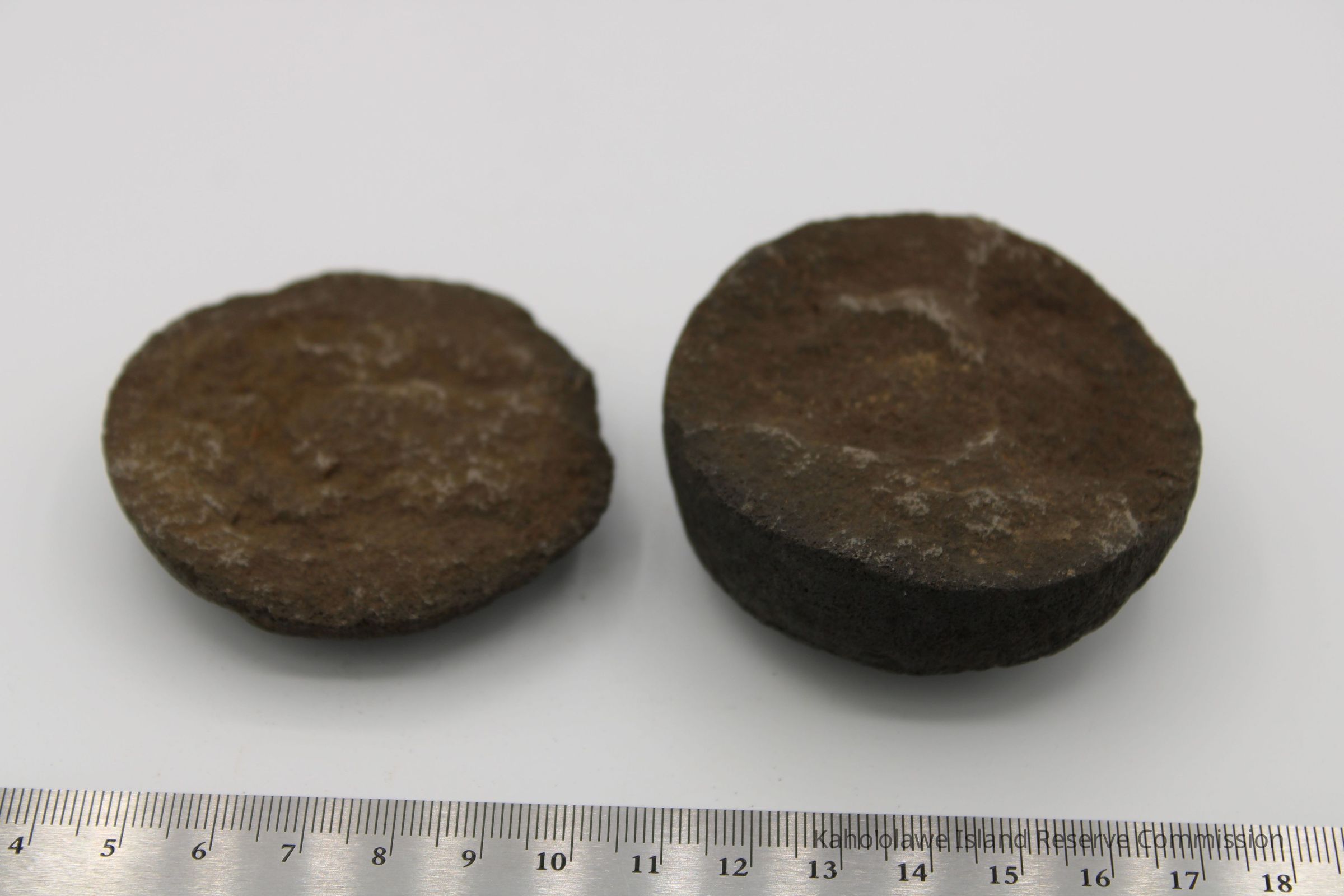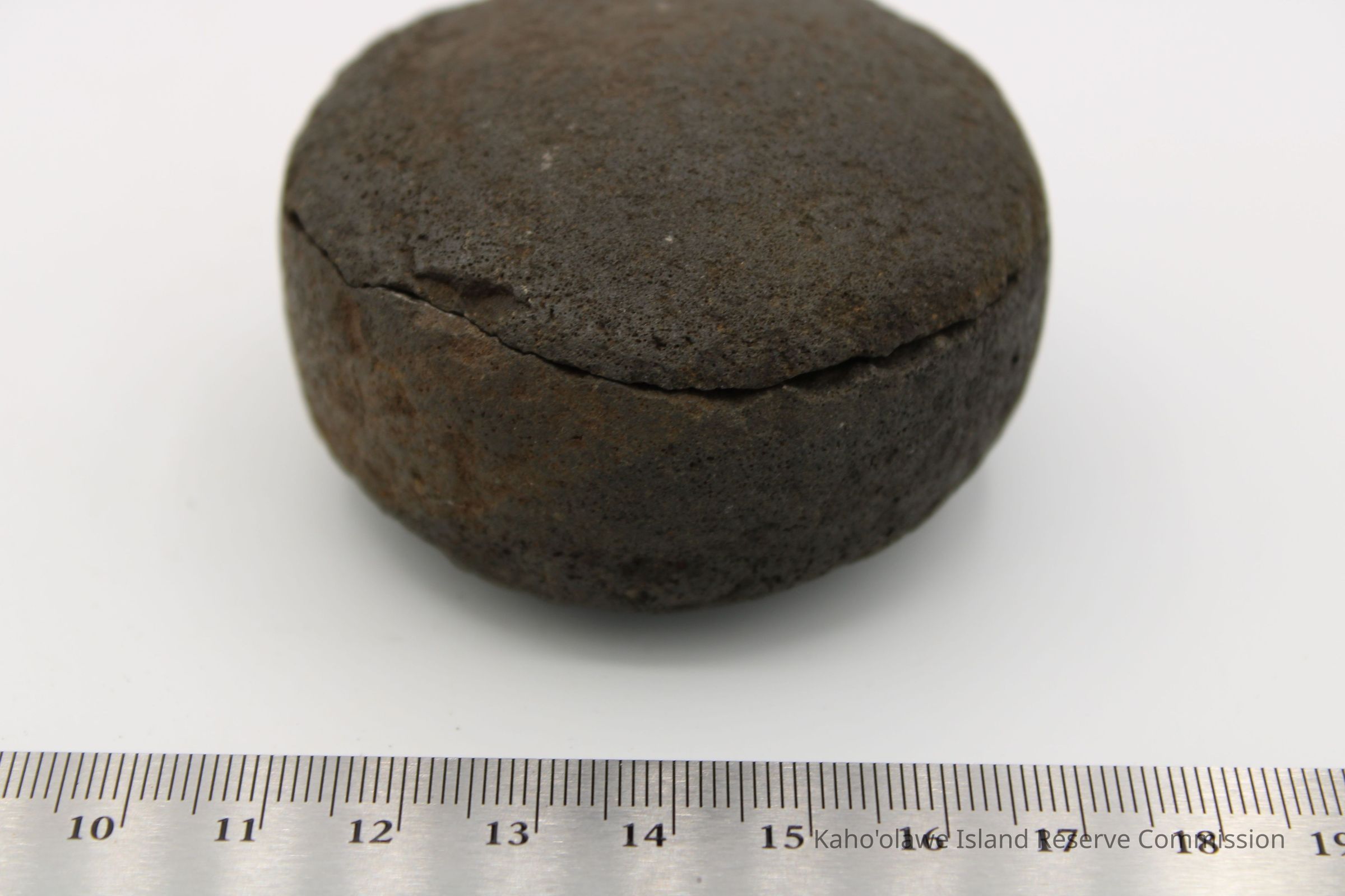 The image shows an 'ulu maika stone next to a crumpled paper with handwritten notes, including measurements.