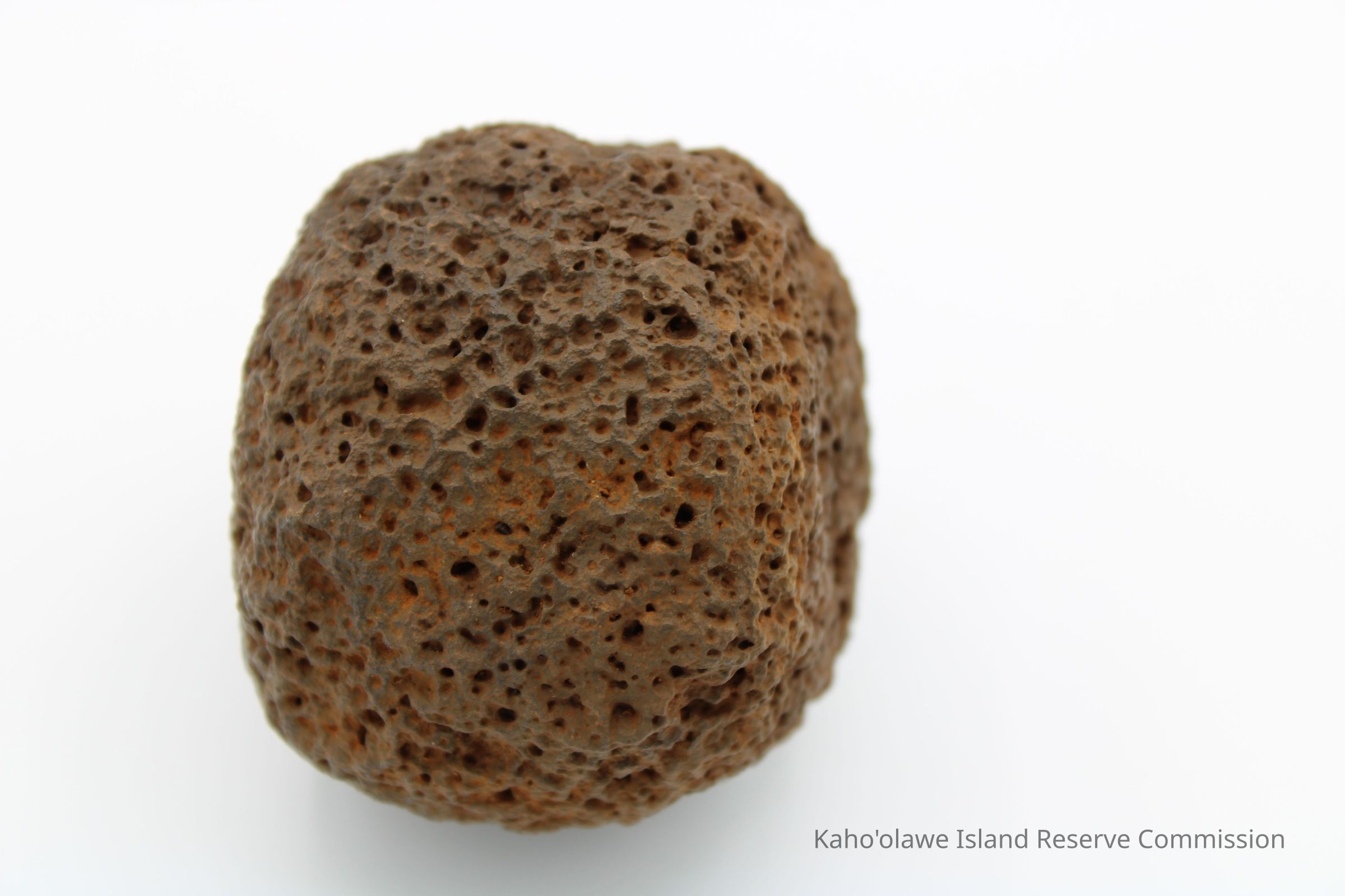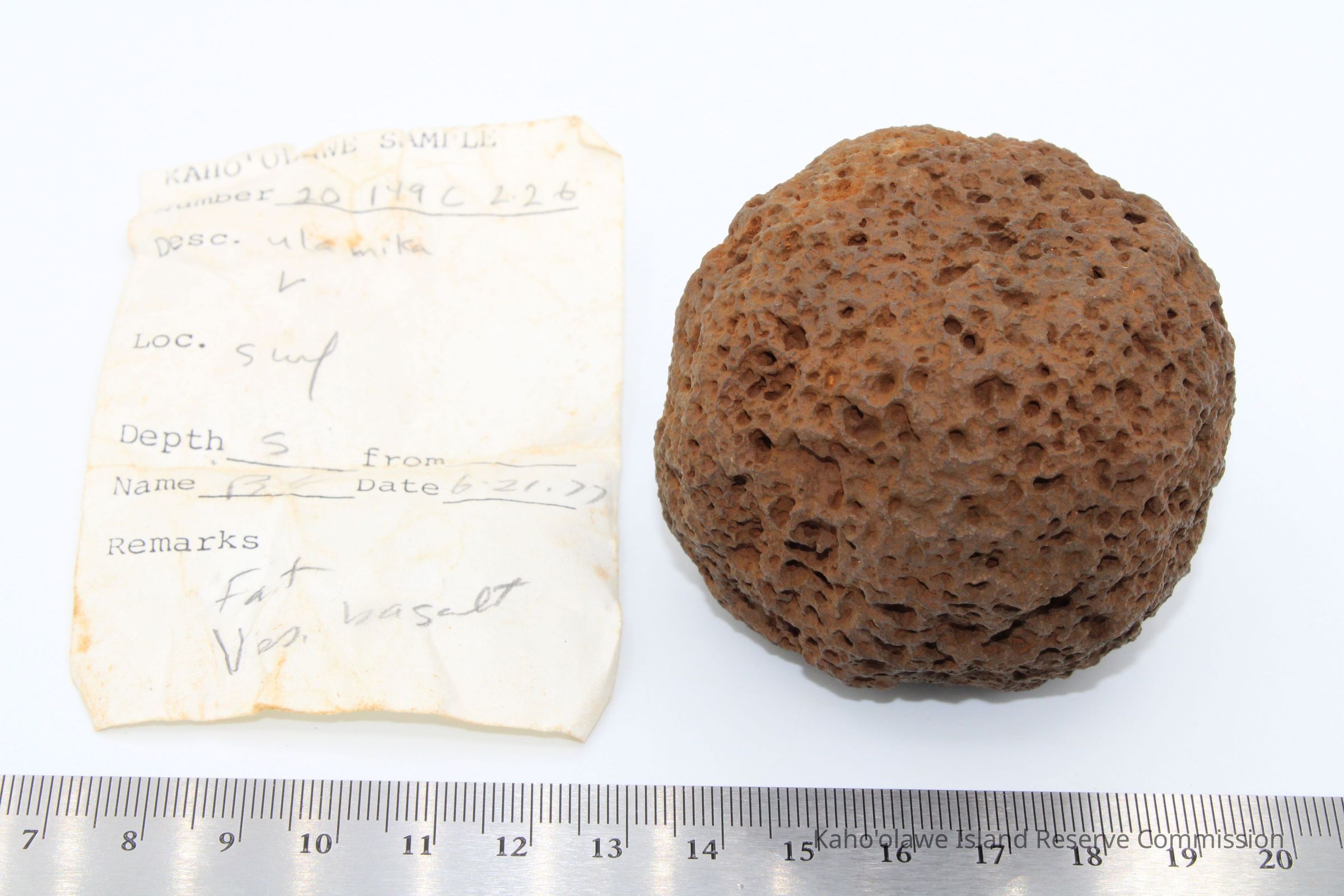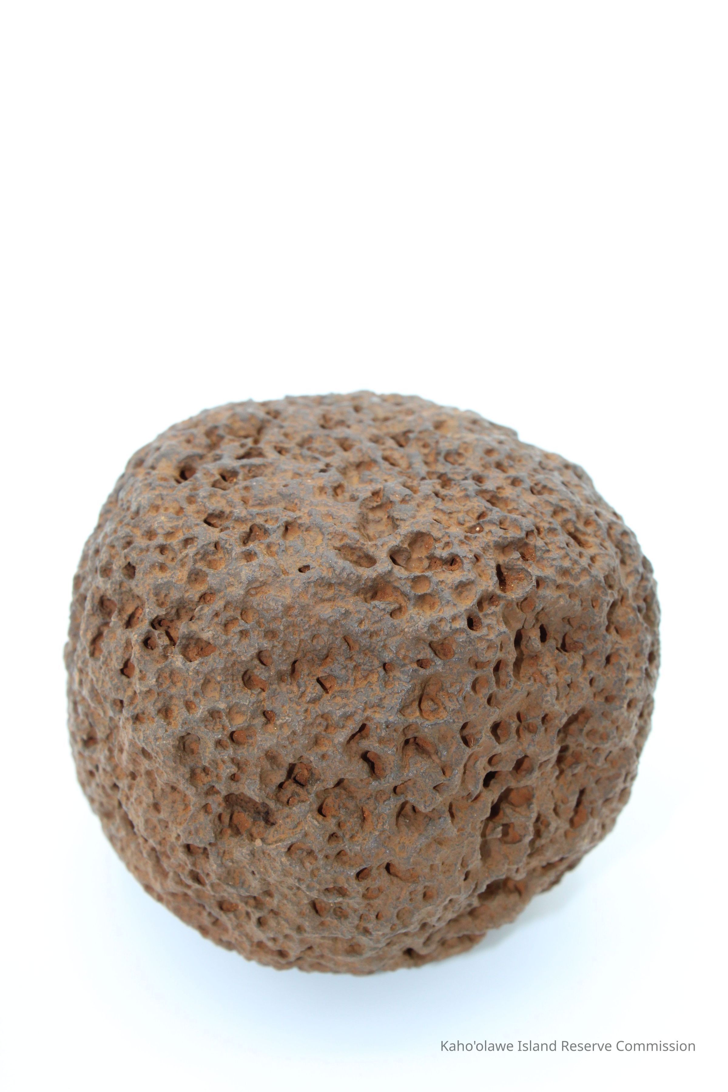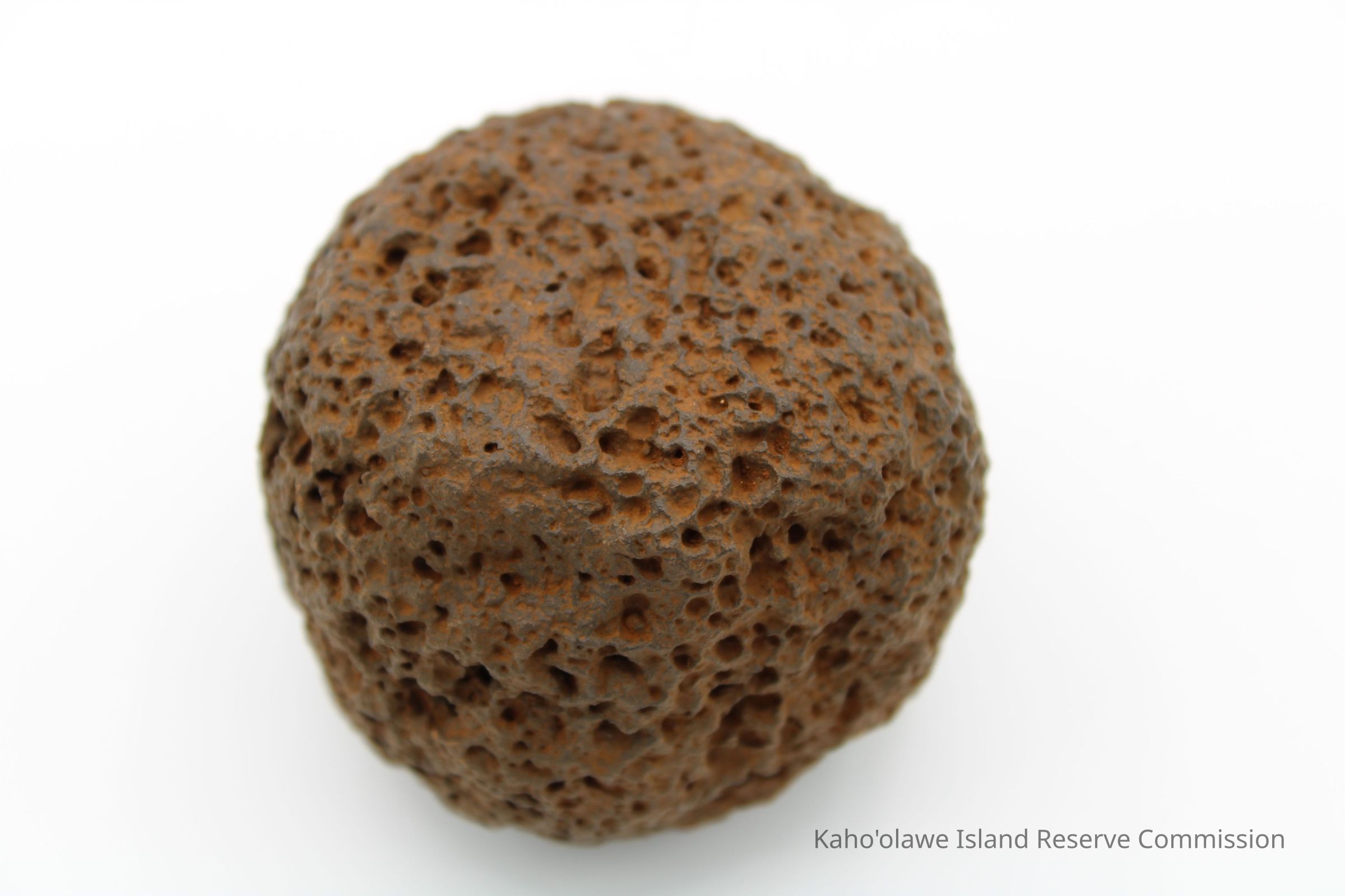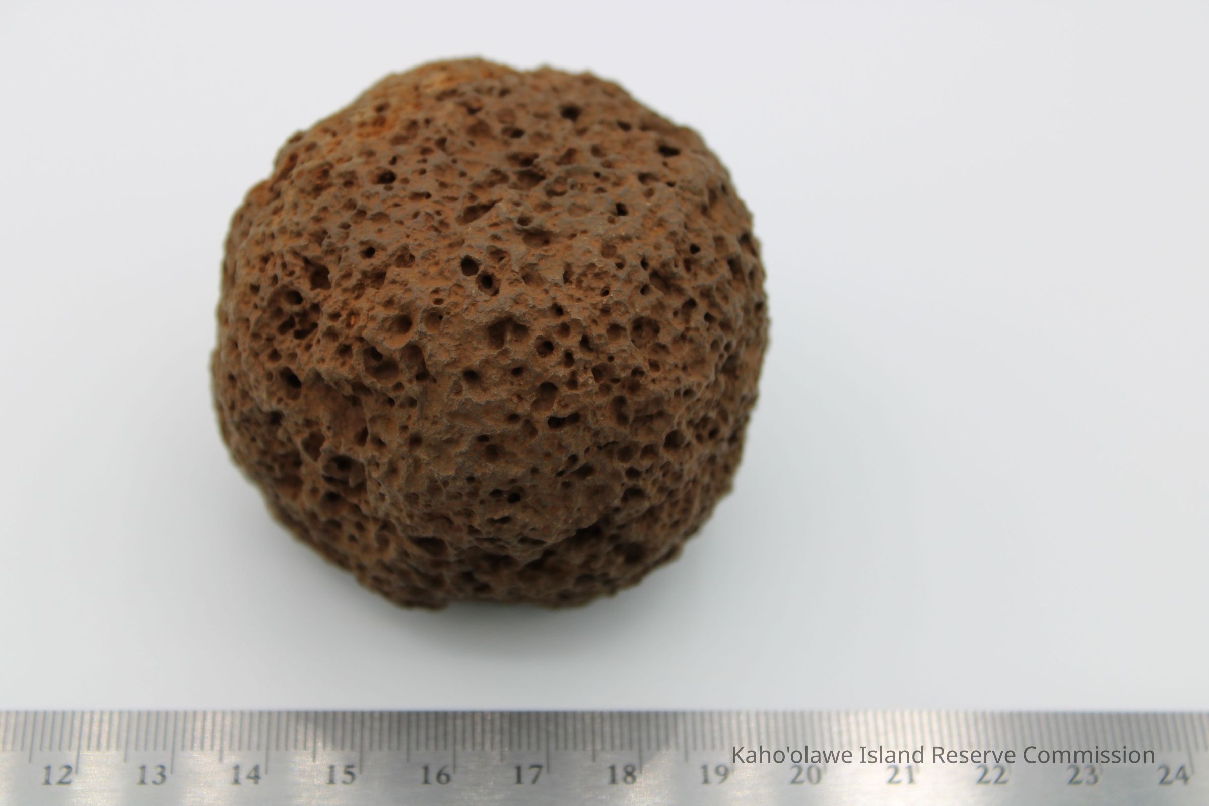 Intact, thick, vesicular basalt 'ulu maika (stone used in maika game).Collection