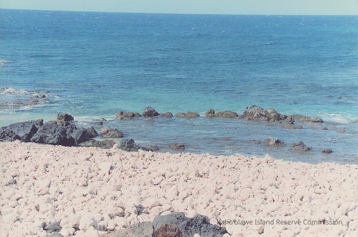 Color photo of an unidentified beach (possibly in Kealaikahiki Ili) filled with mostly white coral.