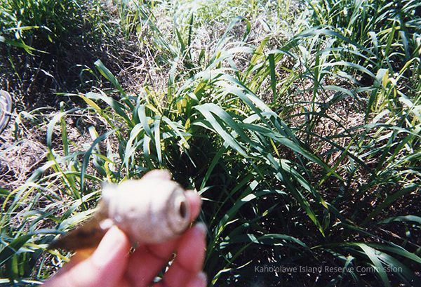Color photo of an unidentified object being held in a hand, either in Hilu'ula or Kuheia.