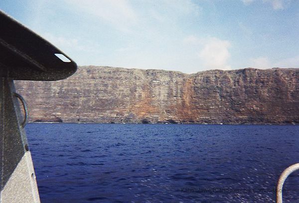 Color photo of the southern coast of Kaho'olawe taken from the Hakilo.