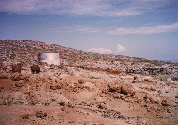 The image shows a barren landscape with rocky terrain, a small tank, and a sparse, grassy hill under a blue sky.