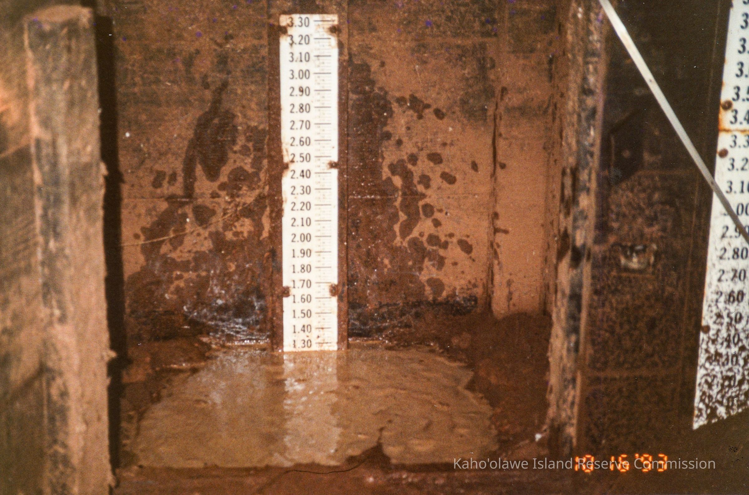 Color photograph of a water gage measuring water from Hakioawa River which was starting to flow. The number "29" and 10/16/93 is handwritten on the back.