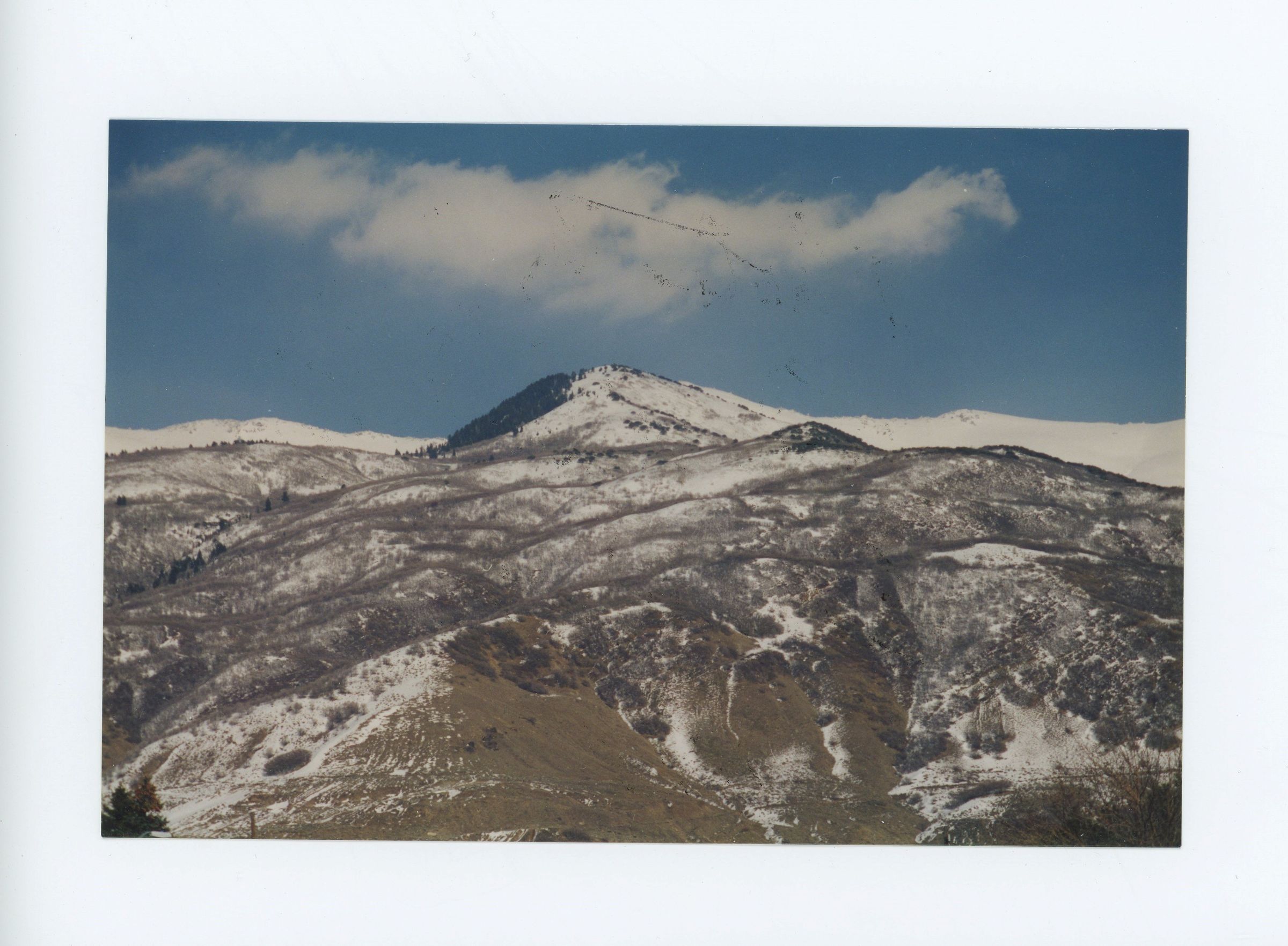 Snow-covered Ed's Peak, a landmark located east of Kaysville and above Fruit Heights.