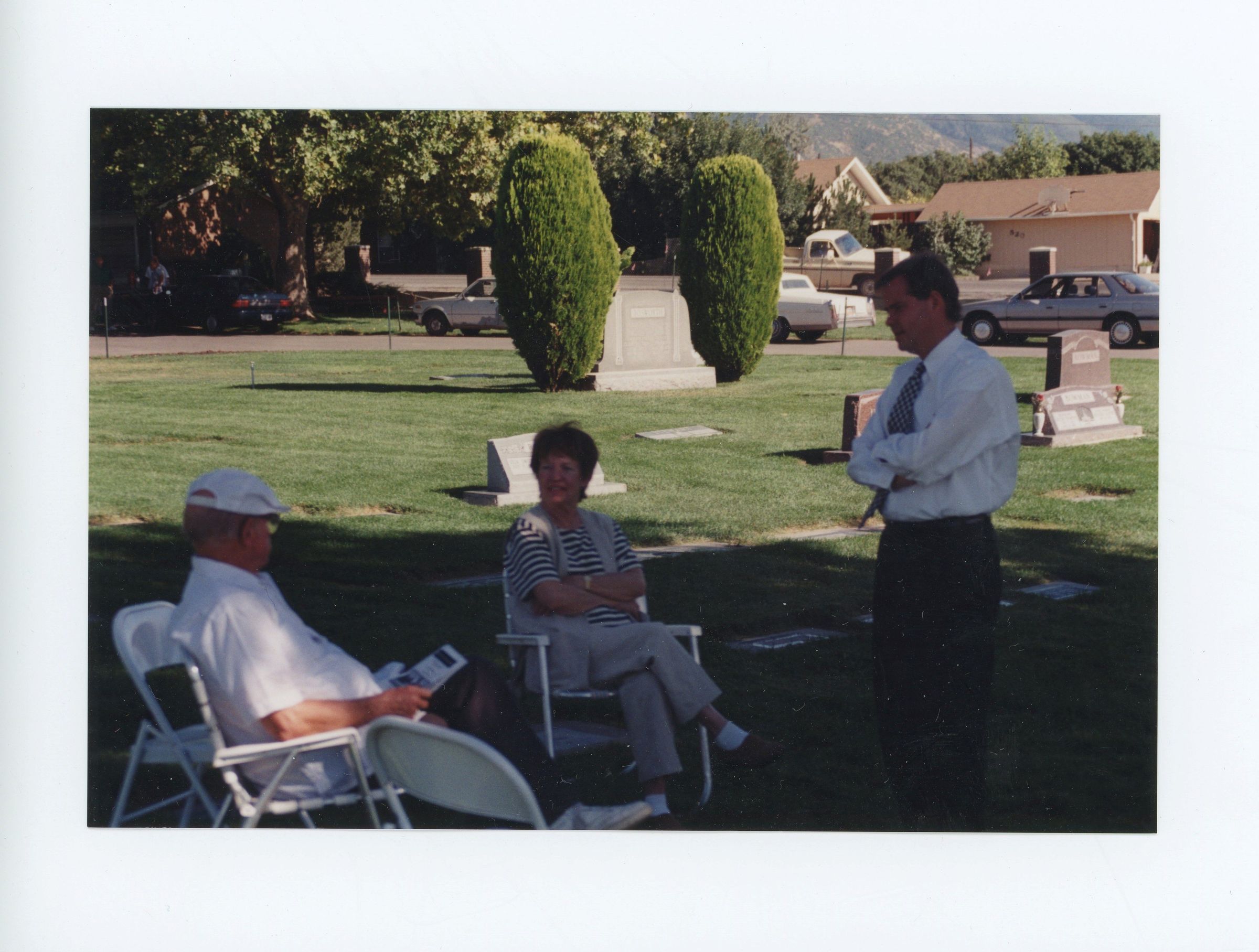 An event which was part of the Kaysville - Fruit Heights celebration of the Utah Centennial took place in 1996. The tour, hosted by the Kaysville - Fruit Heights Historic Committee, invited the public to visit historically significant gravesites in the city cemetery.Photograph Details