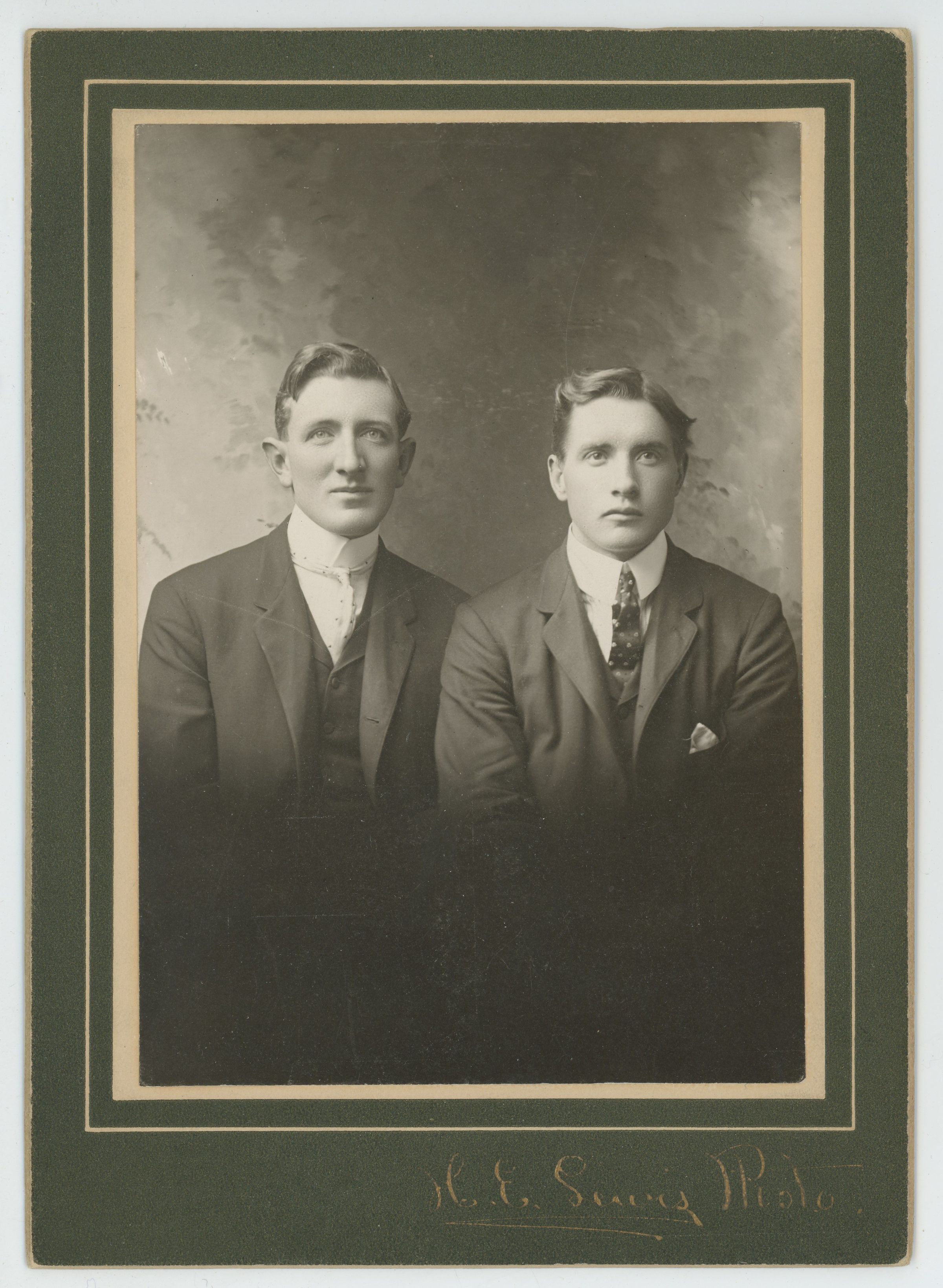 Studio portrait of Frank, left, and Albert, right, Barton brothers.Photograph Details