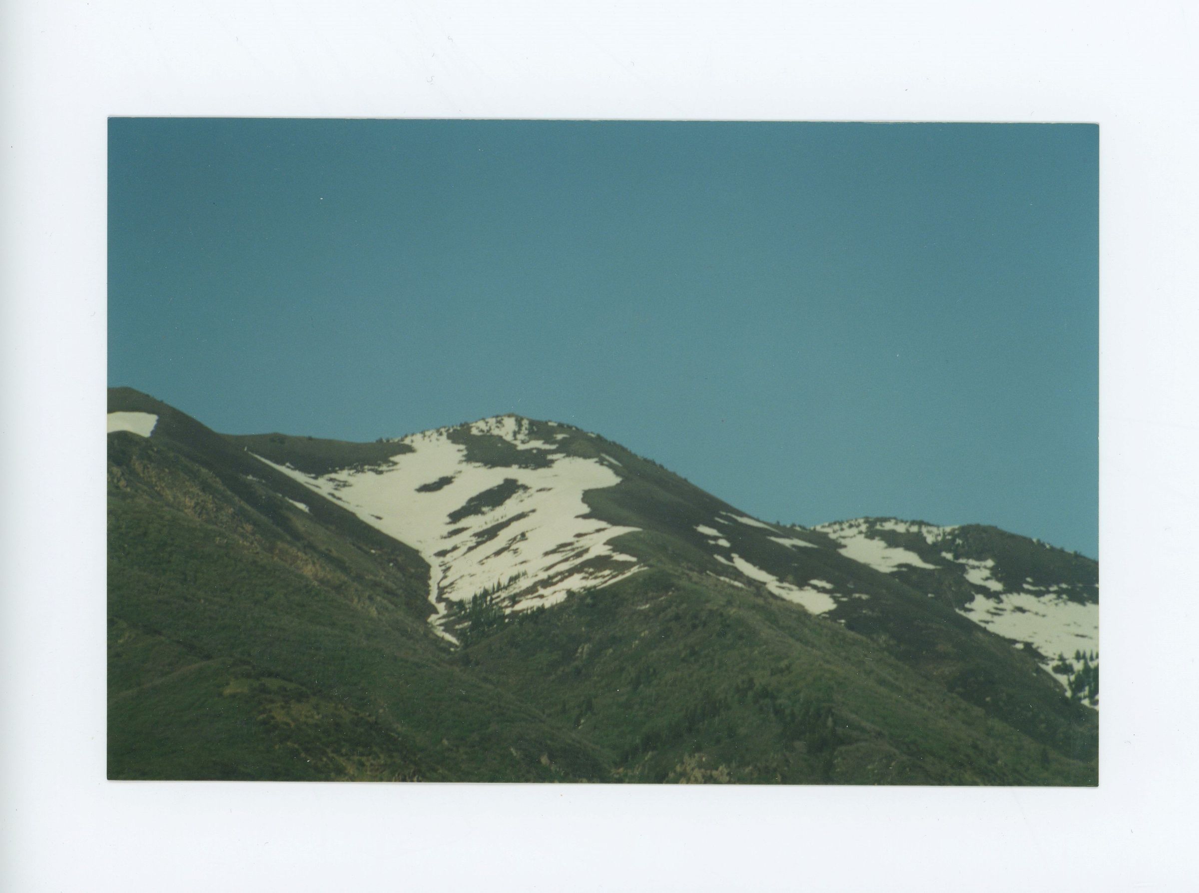 Mountain with snow shows emerging Snow Horse geologic-weather feature.