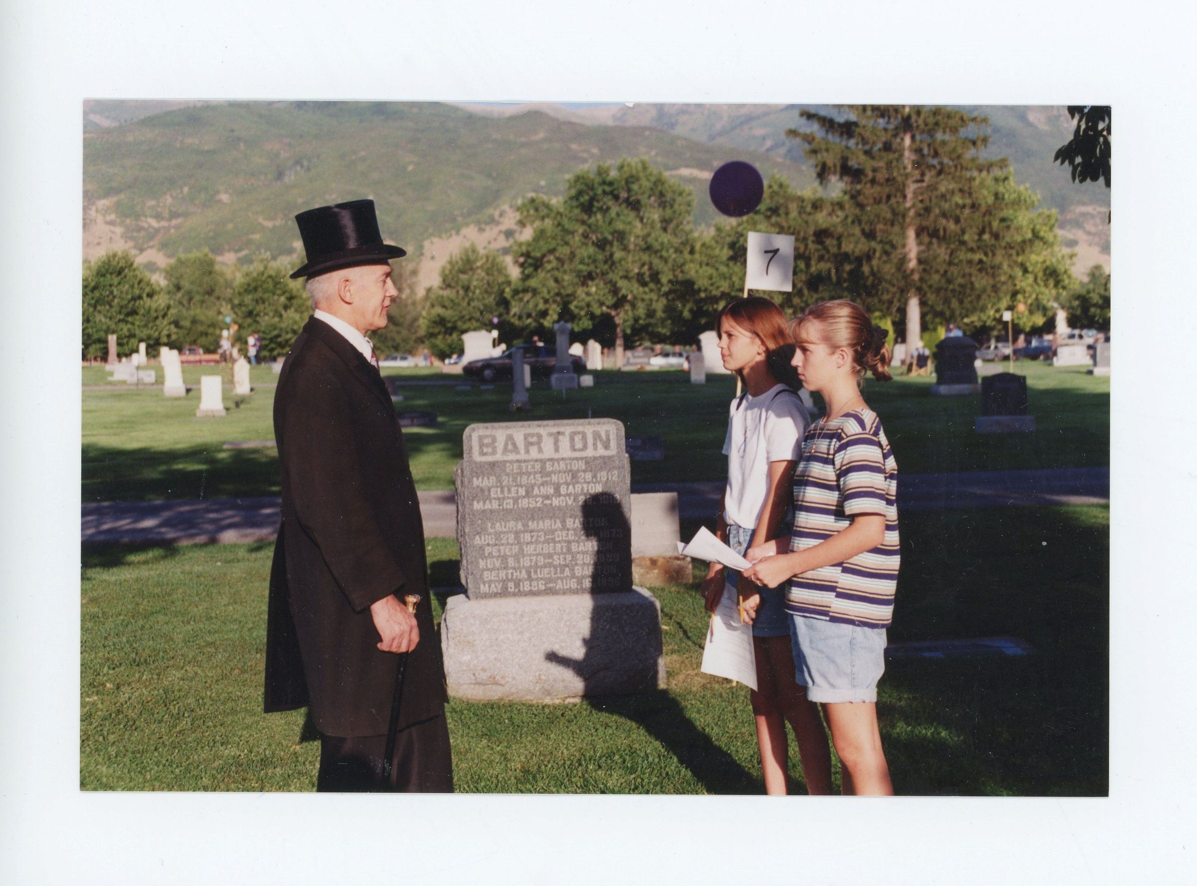 An event which was part of the Kaysville - Fruit Heights celebration of the Utah Centennial took place in 1996. The tour, hosted by the Kaysville - Fruit Heights Historic Committee, invited the public to visit historically significant gravesites in the city cemetery.Photograph Details
