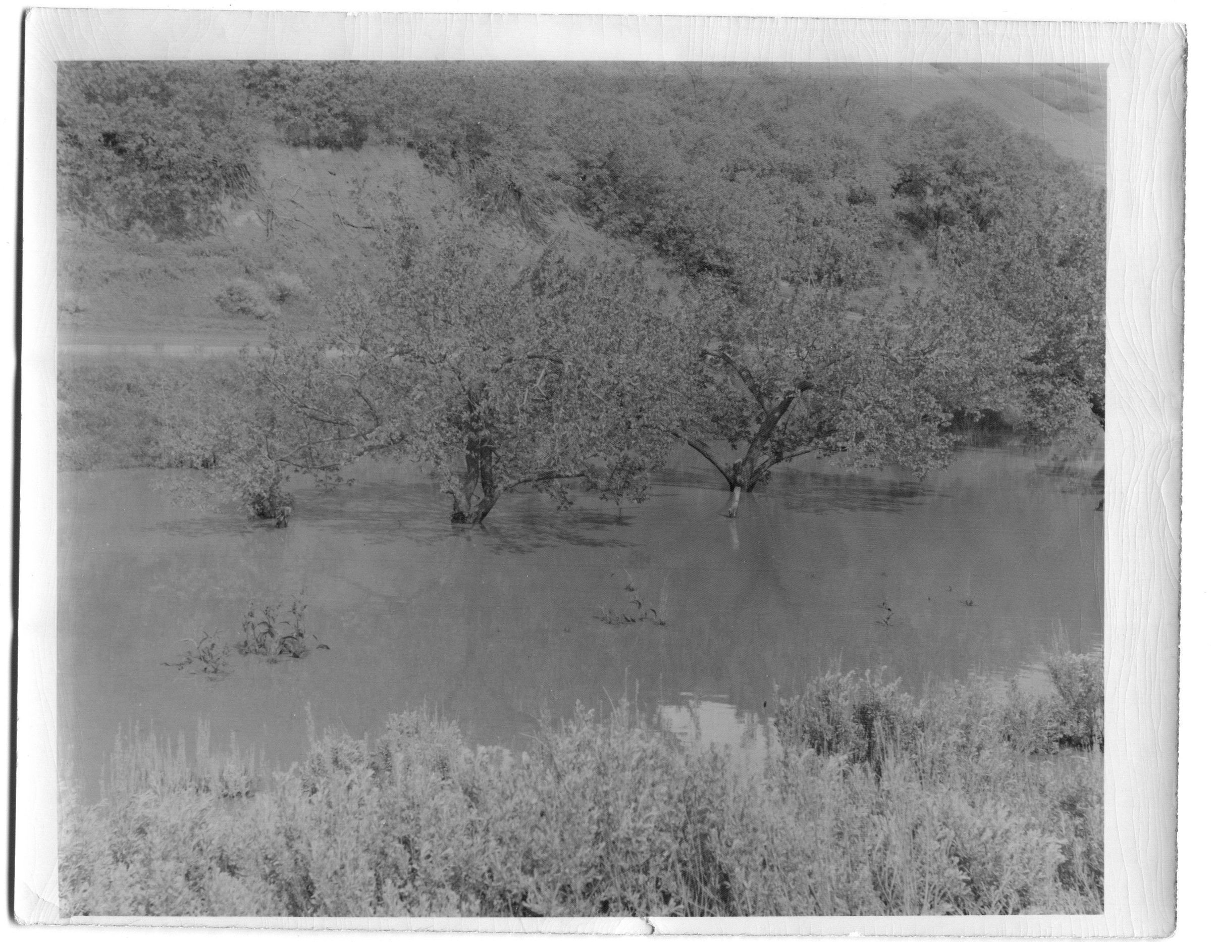 Old Mountain Road running just beyond flooded apricot trees.Photograph Details
