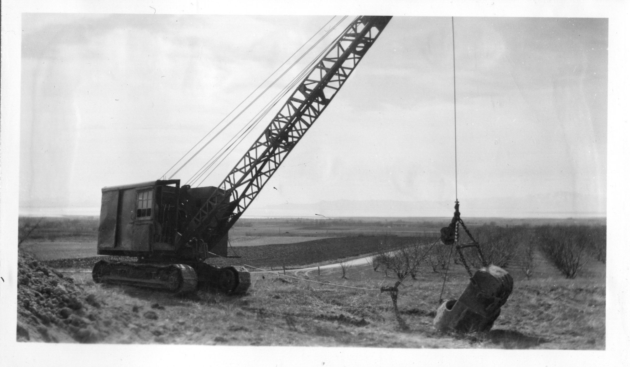 Excavation machine preparing irrigation reservoir on Bucher property in east Kaysville/Fruit Heights.Photograph Details