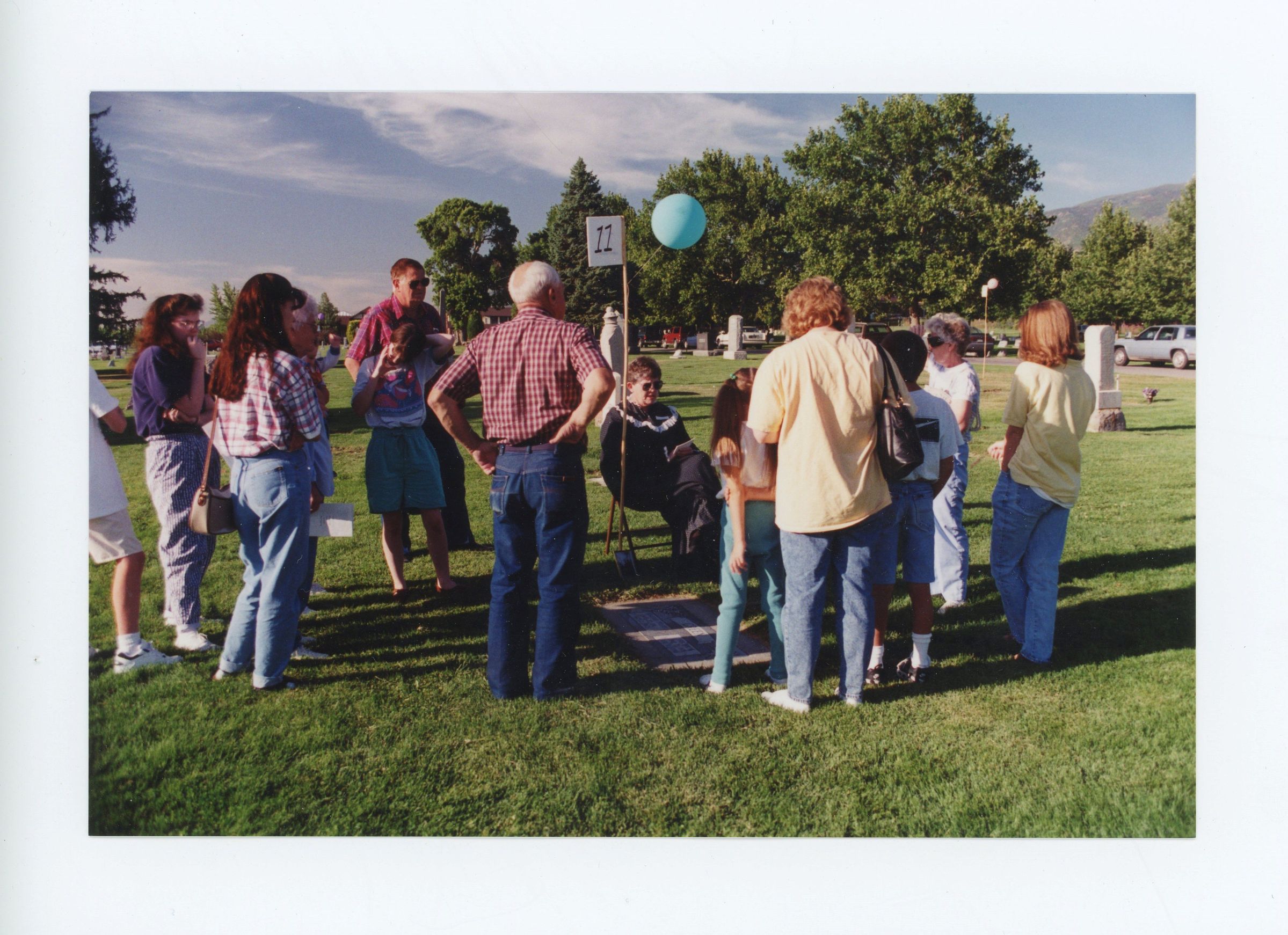 An event which was part of the Kaysville - Fruit Heights celebration of the Utah Centennial took place in 1996. The tour, hosted by the Kaysville - Fruit Heights Historic Committee, invited the public to visit historically significant gravesites in the city cemetery.Photograph Details