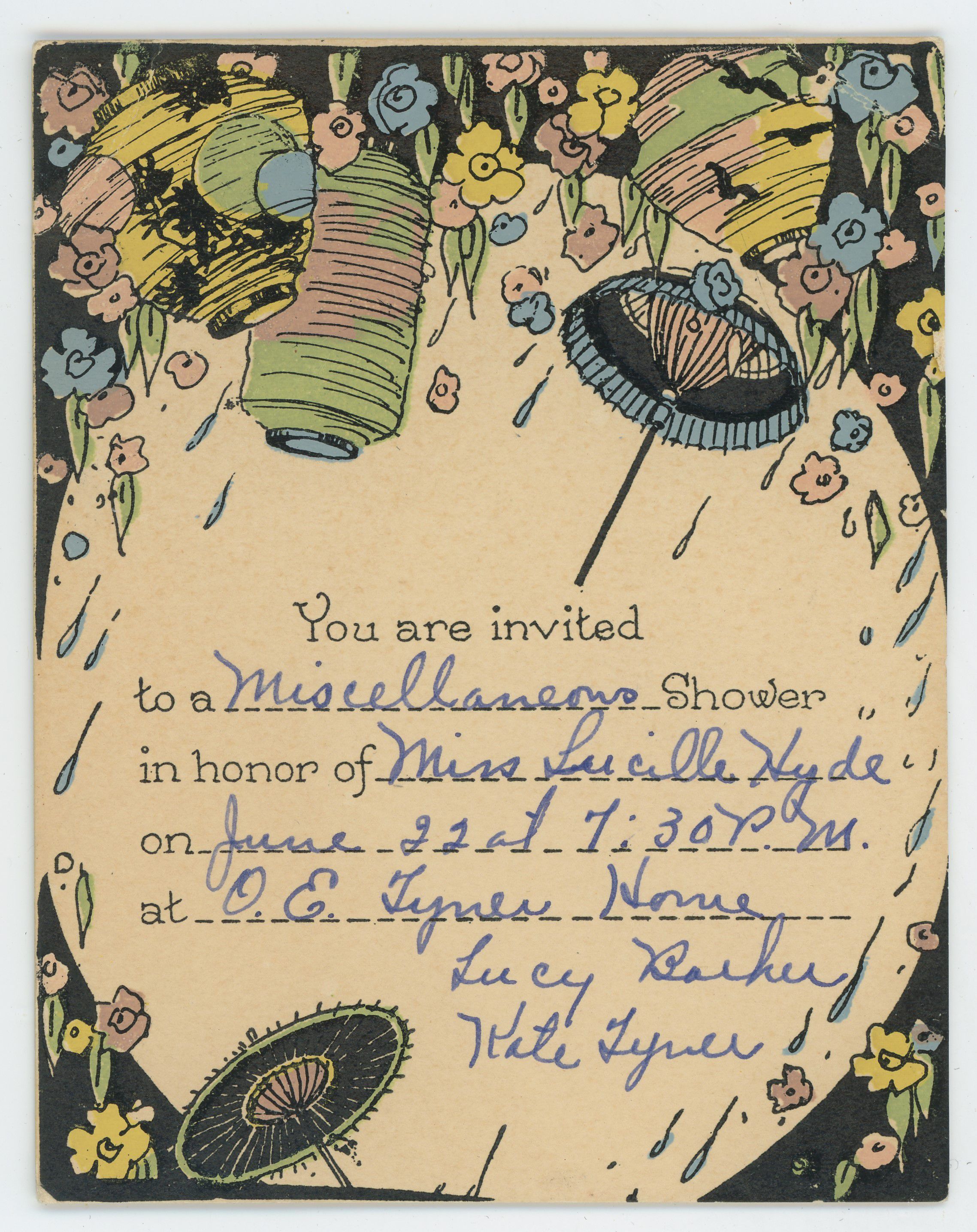 Wedding shower invitation given for Lucille Hyde of Kaysville.Context