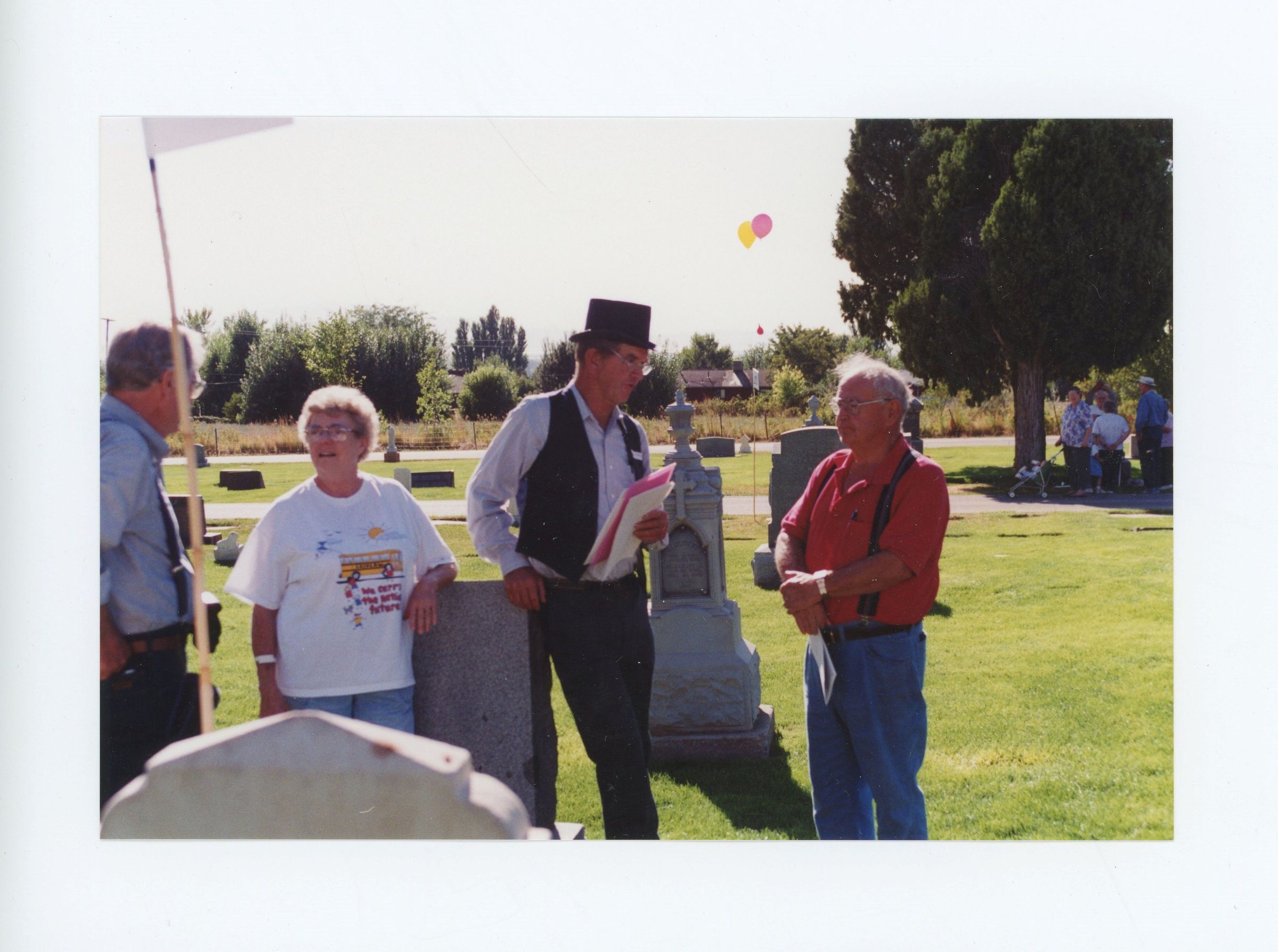 An event which was part of the Kaysville - Fruit Heights celebration of the Utah Centennial took place in 1996. The tour, hosted by the Kaysville - Fruit Heights Historic Committee, invited the public to visit historically significant gravesites in the city cemetery.Photograph Details