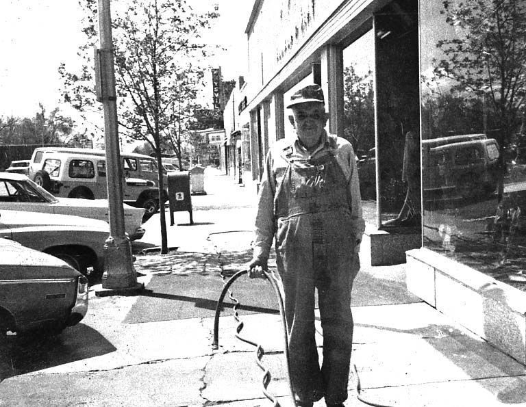 Lyman Blood washing the sidewalk just north of the theater.Collection