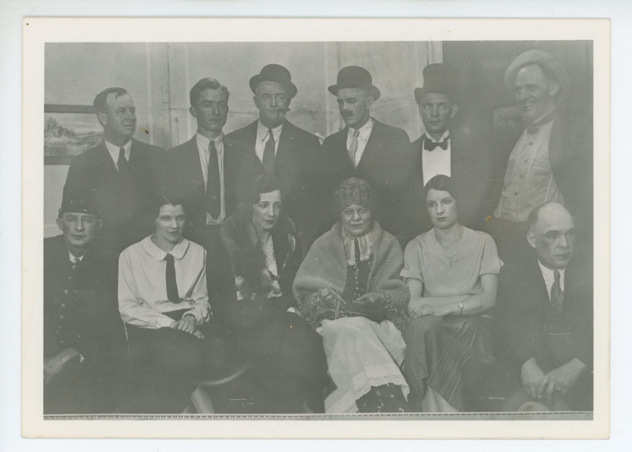 This was an American Legion-sponsored production with most of the cast members being AL members. Their productions were usually fundraisers for the group's many civic projects. Back Row: Myron Phillips, Ray Forsberg, George Sutton, Roy Kilfoyle, Bill Barton, D. Keith Barnes. Front Row: Roy Webster, Marcia Mansell, Breta Linford, Roetta Kilfoyle, _____, Vernon "Pullett" Mansell. They performed in the Kaysville Opera House.Collection