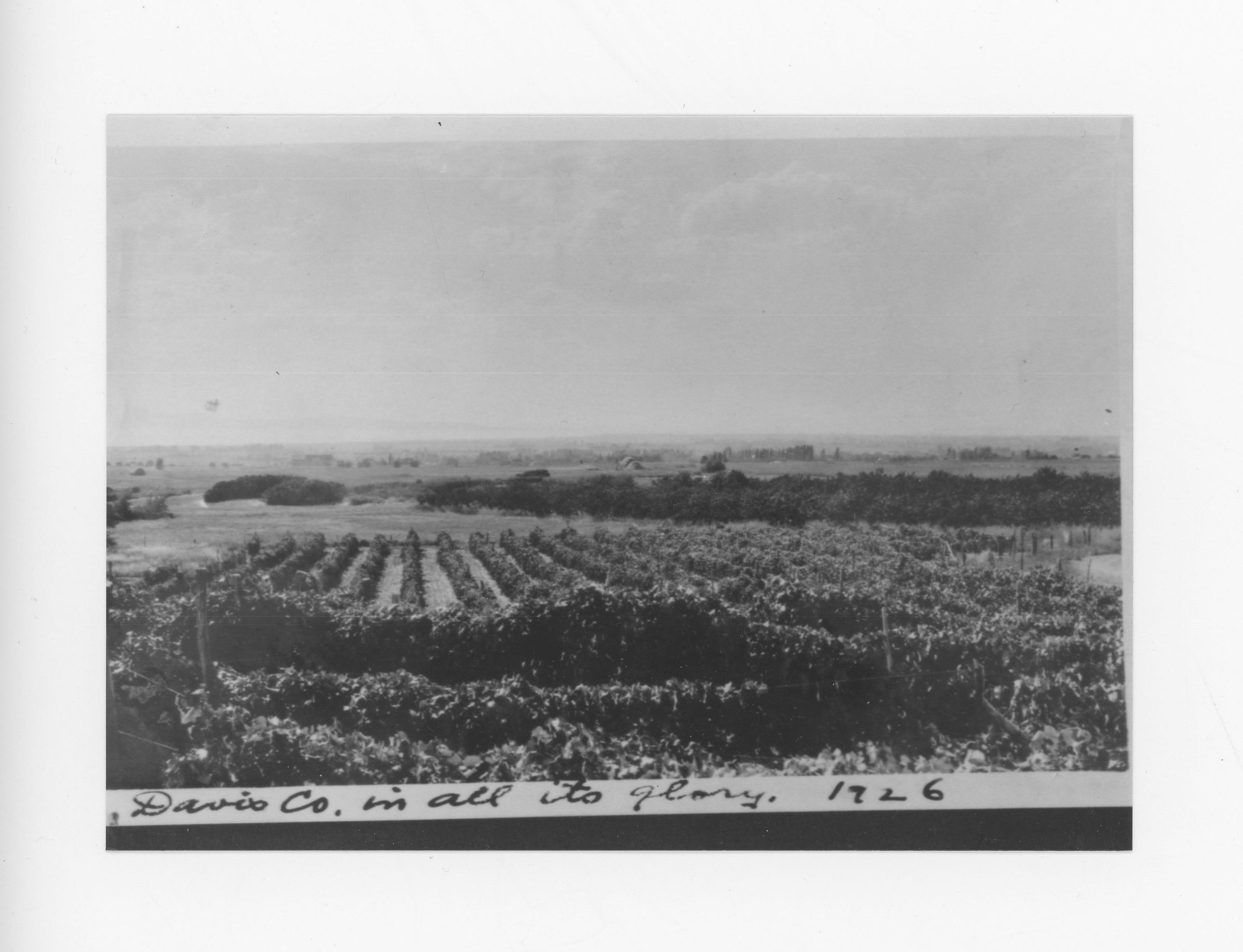 This picture was taken at the Gleason Vineyard in was east Kaysville. The picture is looking west over what is now the Davis County Golf Course.Collection
