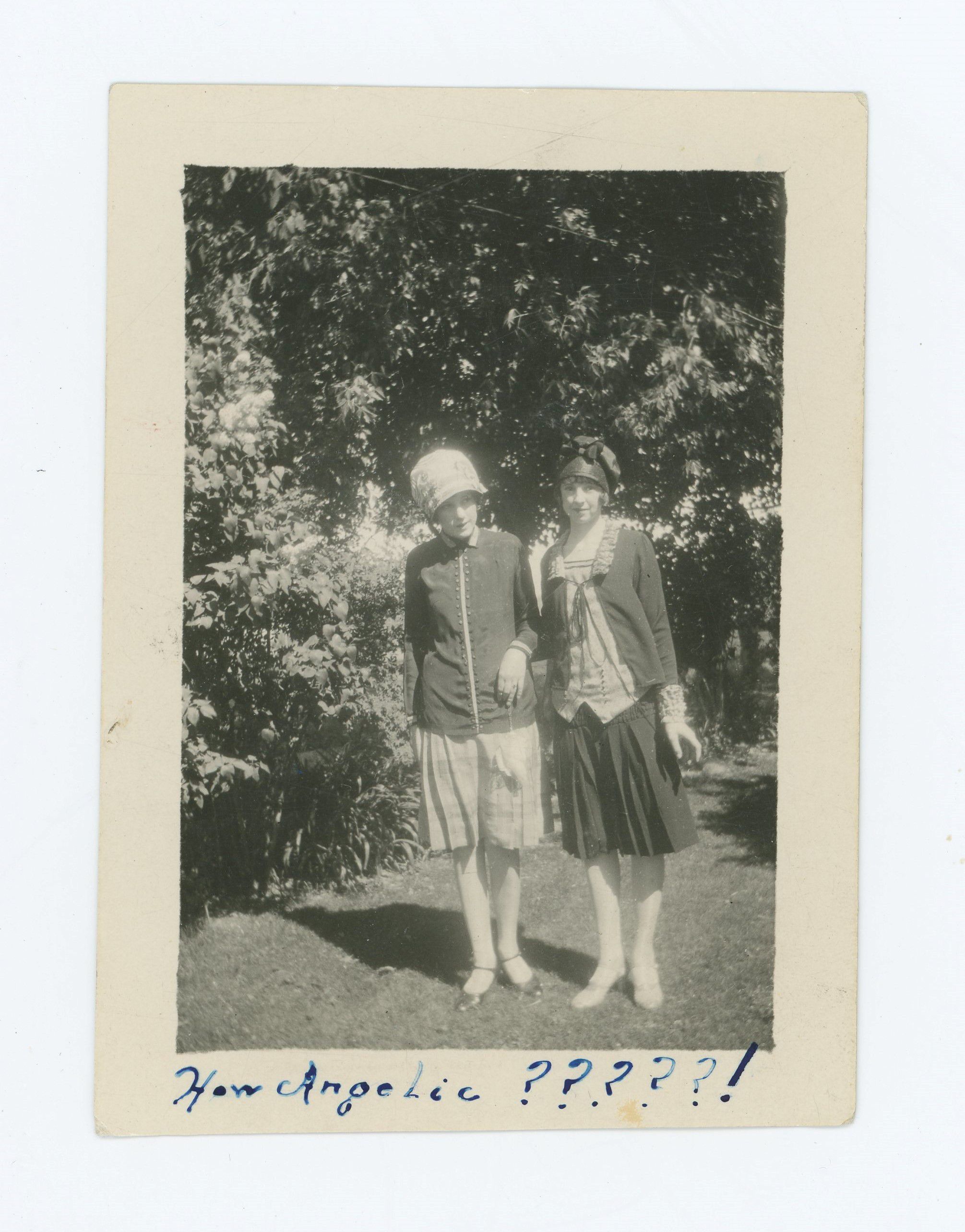 Two women, Thelma and Ruth Walker, standing in a Kaysville yard.