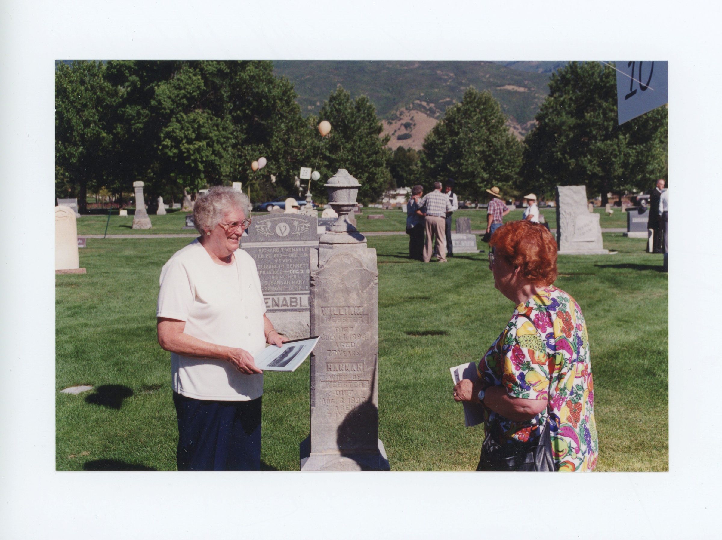 An event which was part of the Kaysville - Fruit Heights celebration of the Utah Centennial took place in 1996. The tour, hosted by the Kaysville - Fruit Heights Historic Committee, invited the public to visit historically significant gravesites in the city cemetery.Photograph Details